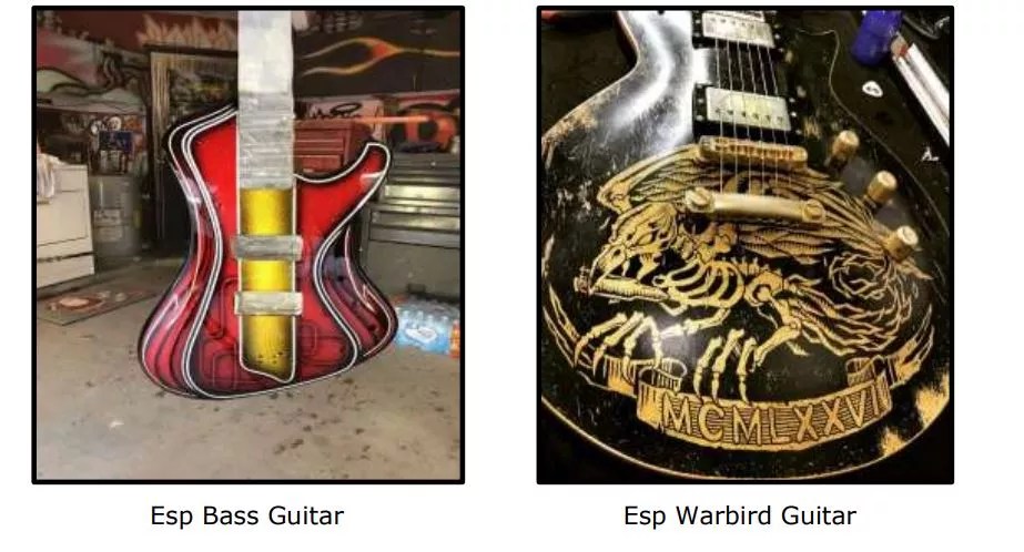 Fans will recall that Lamb of God lost two one-of-a-kind guitars from the Phoenix concert venue on May 2, 2019, the day they were scheduled to open for Slayer along with Amon Amarth and Cannibal Corpse. Sometime in the early morning hours, thieves crept into a truck trailer on a loading dock near the stage and made off with guitarist Willie Adler’s black-and-gold “Warbird” and a hand-painted ESP bass guitar.