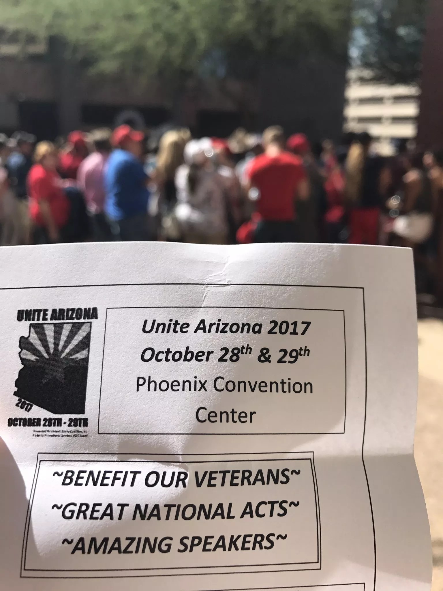 The Free Speech event has changed locations multiple times. It was originally advertised to be at the Phoenix Convention Center.