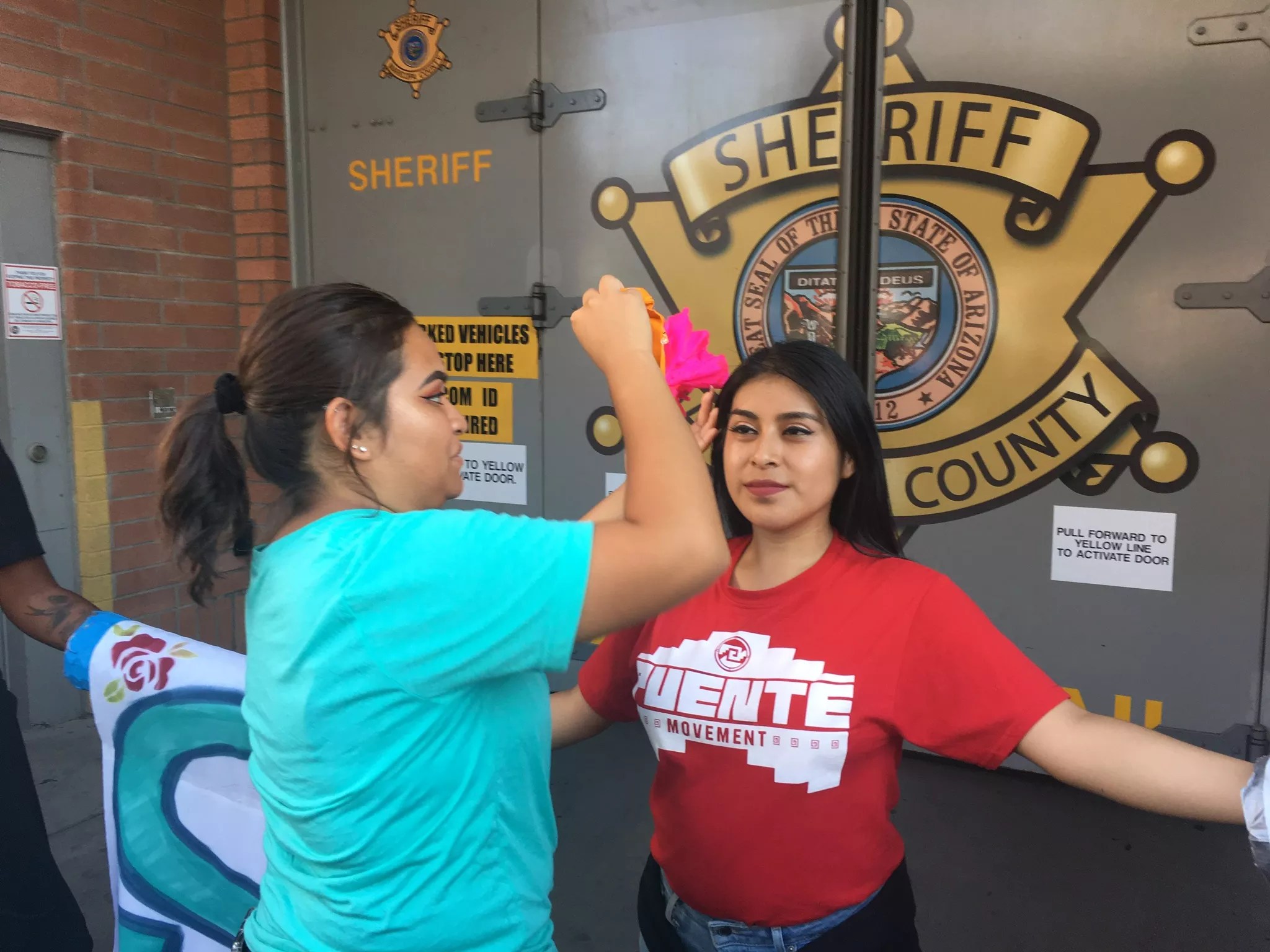 Roughly 150 protesters showed up for the demonstration, which was organized by the immigrant advocacy group Puente Human Rights Movement. They gathered at 4 p.m. outside the Maricopa County Sheriff’s Department headquarters before marching to the Fourth Avenue Jail. Chants of “Si se puede!” and “Chinga la migra” (Fuck immigration authorities) echoed across the Fourth Avenue block between Madison and Jackson streets.