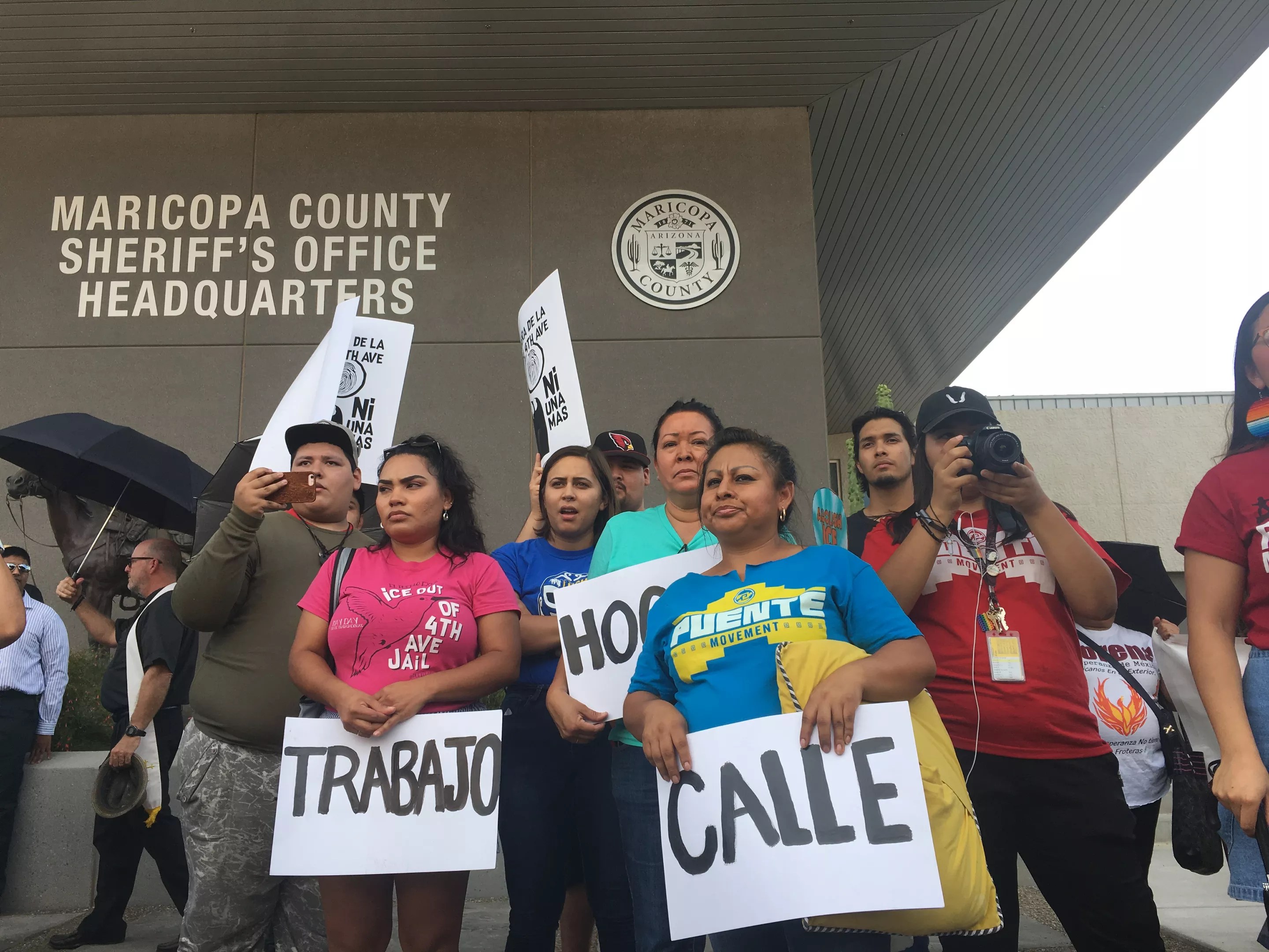 Protesters on Wednesday called for Maricopa County Sheriff Paul Penzone to end collaboration with ICE.