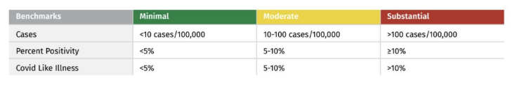 The change in policy comes as the county has reached the “moderate” stage of COVID-19 spread as measured by state benchmarks. The numbers used are on a two-week lag to account for processing delays.