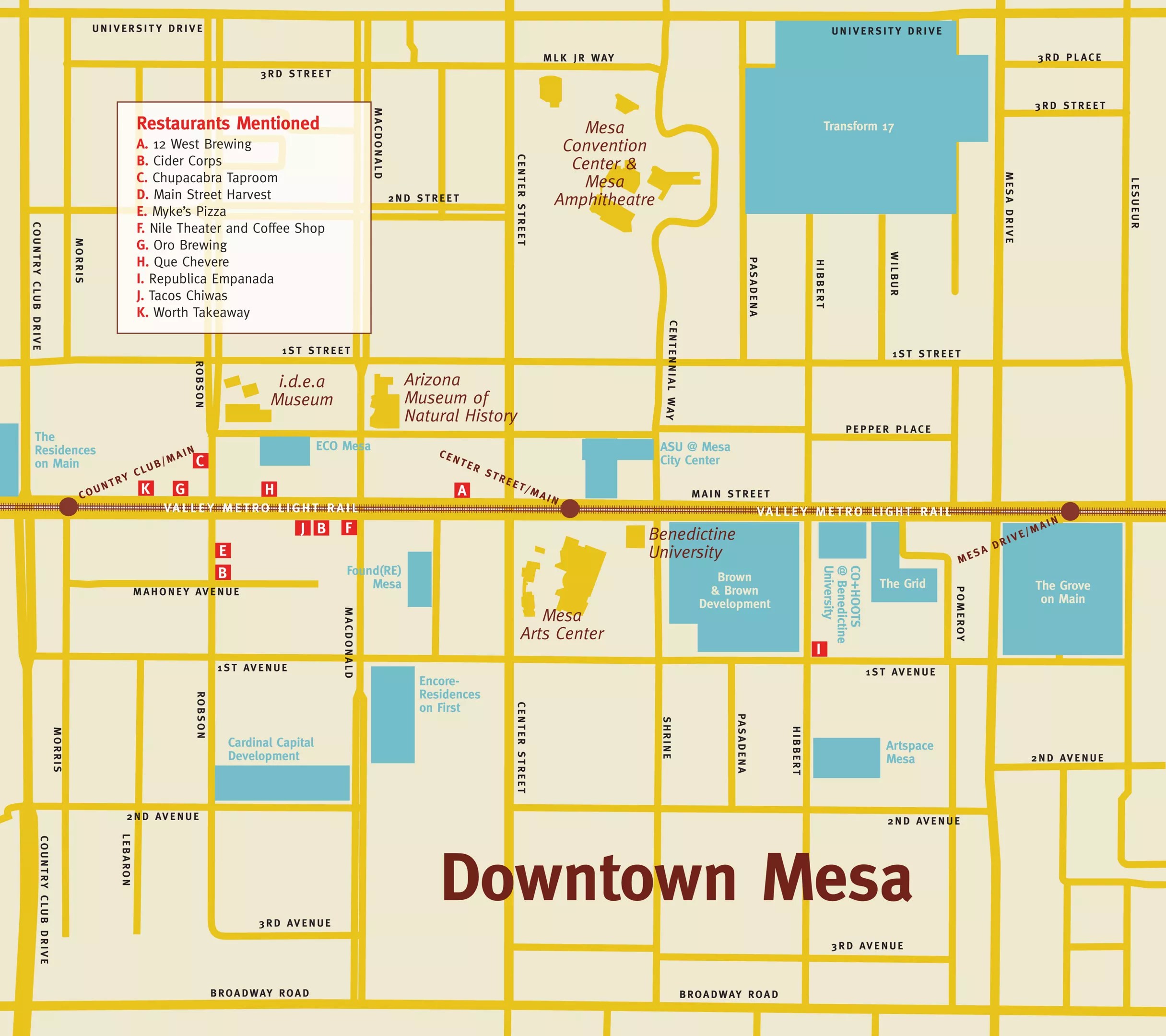 An additional 1,300 residential units are currently slated for construction or already under construction within a short walk of downtown, McVay says. This doesn’t include the recently finished Mesa Artspace Lofts, which provide living and studio space for 50 artists and their families. He continues to point across his map to buildings, parks, and other public spaces, cycling through the dozen-plus projects to come to the Main Street corridor.