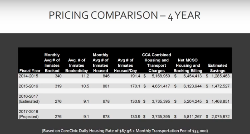 “One of the biggest goals for me was to make sure that our inmates were going to get comparable or better treatment at this CoreCivic facility than they are with Maricopa County,” he said.
