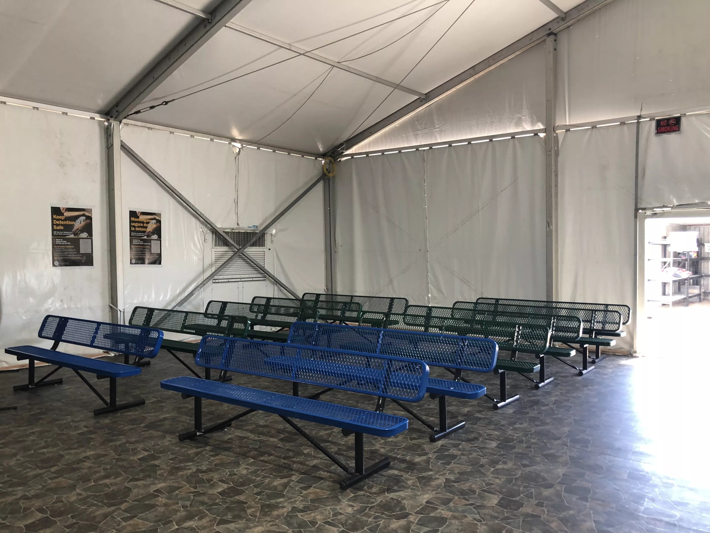 Empty benches line the entrance of the Yuma temporary holding facility.