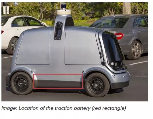 The R1 uses 14.1-kwh, 48-volt lithium battery packs located in the bottom-center of the vehicles that use “considerably less voltage” than standard electric vehicles for passengers, the guide states, adding information on how to deal with a fire. “Do not use small quantities of water,” the company recommends.