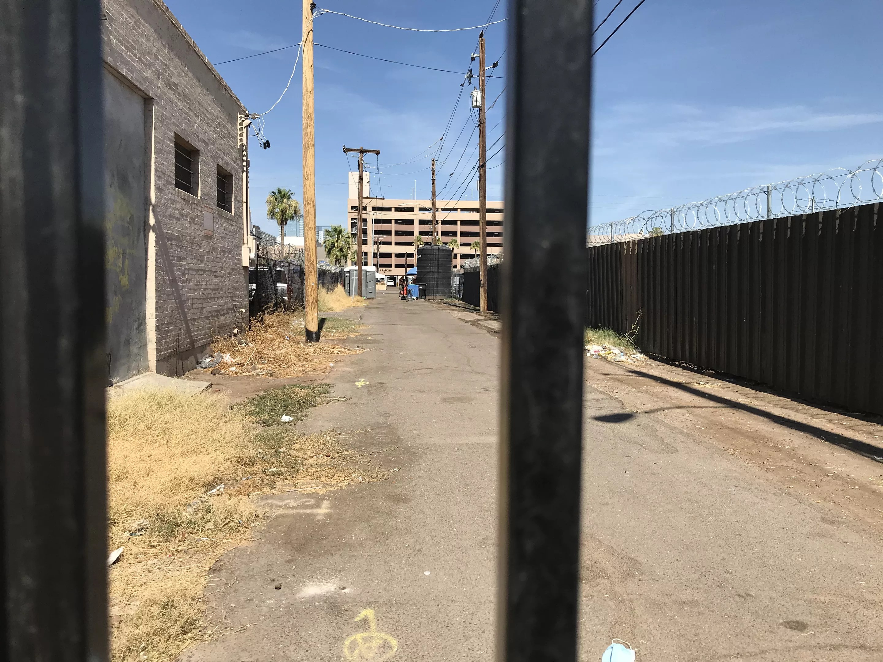 The alleys are part of an area southwest of downtown Phoenix that’s been home to a rising number of people experiencing homelessness – a number expected to grow larger as the pandemic continues. Hundreds of people live in a county-sanctioned village of tents spread out over several lots, along the side of the road or in the nearby Human Services Campus shelter.