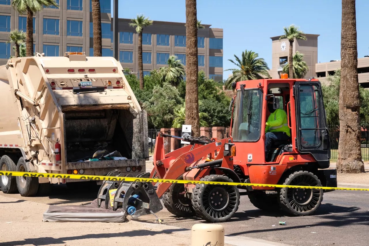 Facing a court order, the city of Phoenix began to clear out the encampment in May. As with the first cleanup on May 10, city workers and social services teams arrived on the block at sunrise on Wednesday. The day began without incident as officials assisted people there with packing up their tents and belongings.