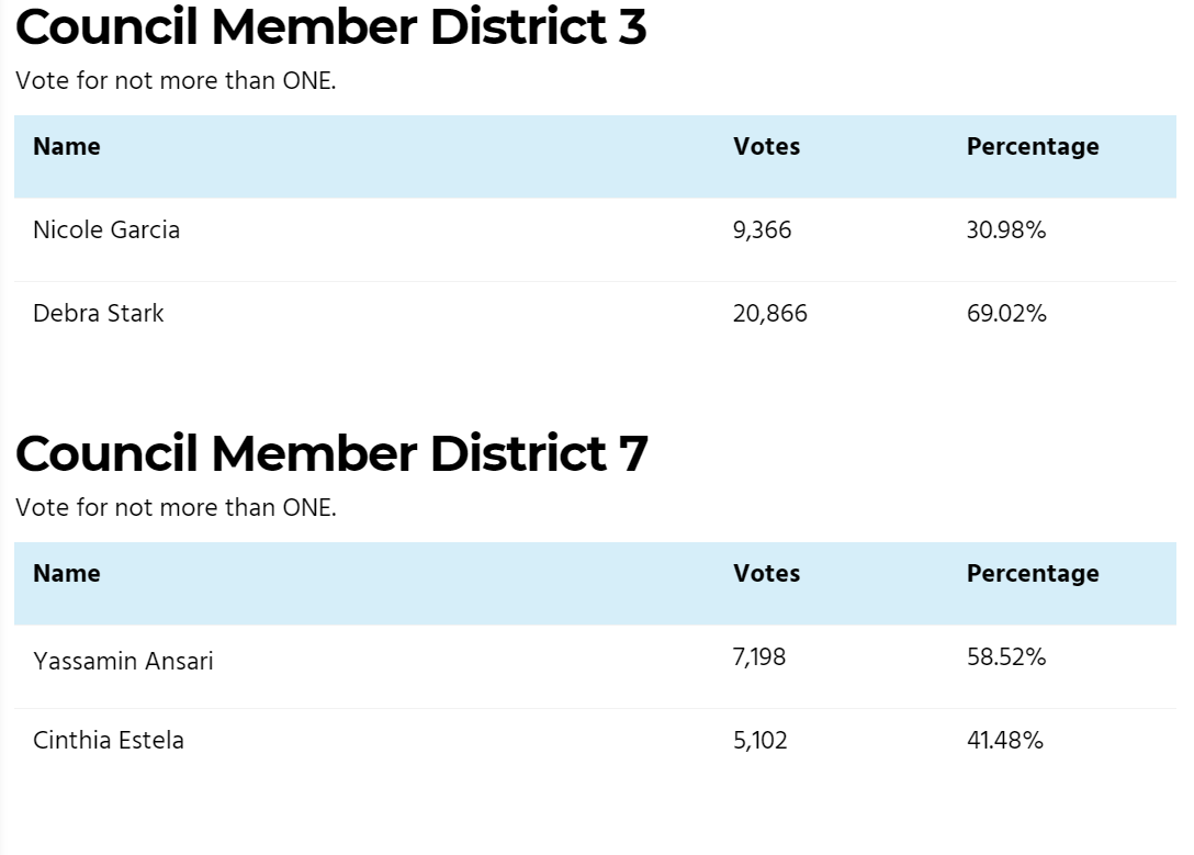 Ansari was challenged by Laveen Community Council member Cinthia Estela, whose campaign had touted her long history in the district. Estela backers criticized Ansari’s recent move to District 7 and her upbringing in a ritzy Scottsdale suburb, while Estela faced scrutiny for a checkered past that included allegations of child abuse as part of a messy divorce from an ex-husband she has said was abusive.