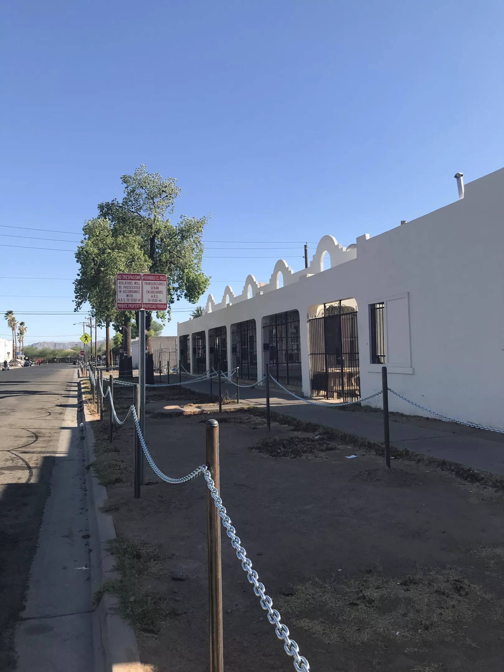 These chains installed in parking strips around the Human Services Campus are one example advocates have pointed to as a hostile approach to homelessness in Phoenix.