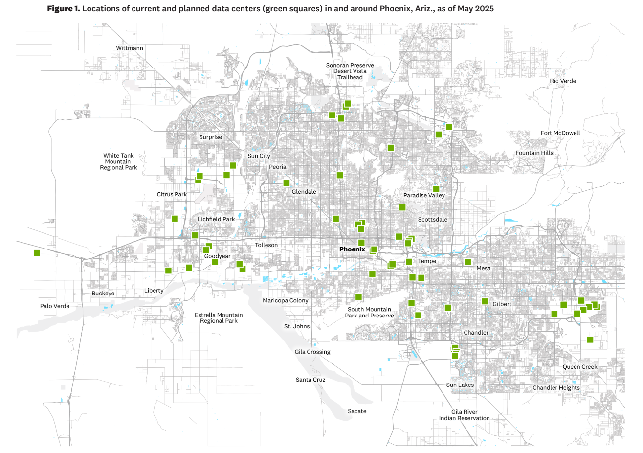 Quietly but quickly, Phoenix has become one of the nation’s hotspots for a booming economic and technological phenomenon of late-stage capitalism: data centers – the boxy, sprawling farms of wire and silicon going up everywhere around the Valley.
