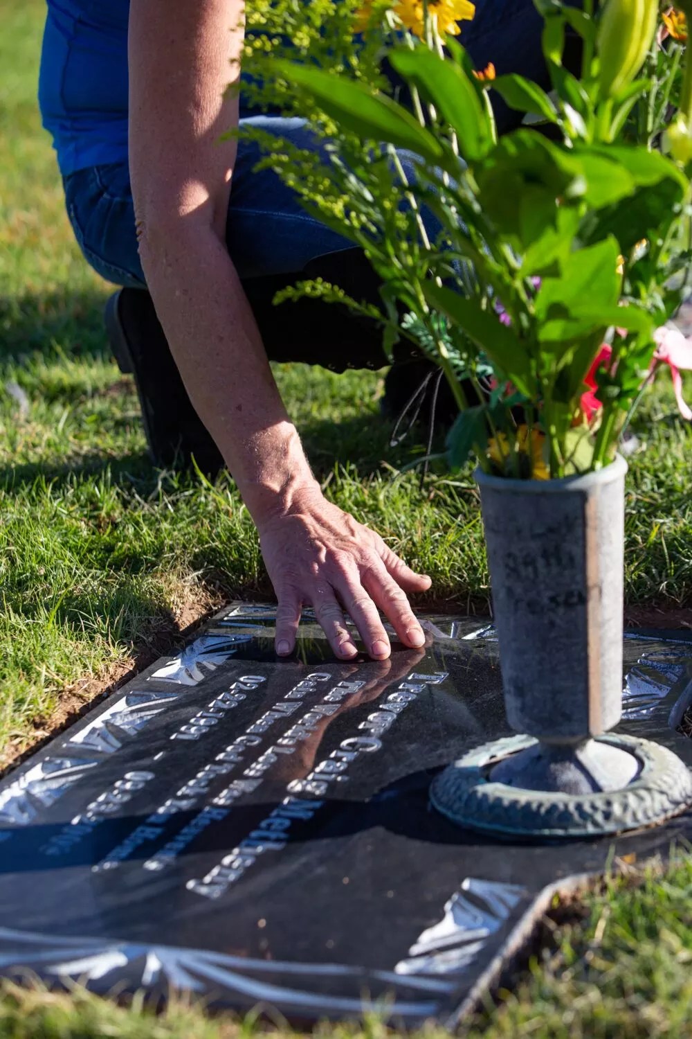 Lisa Lowery touching her son’s grave.