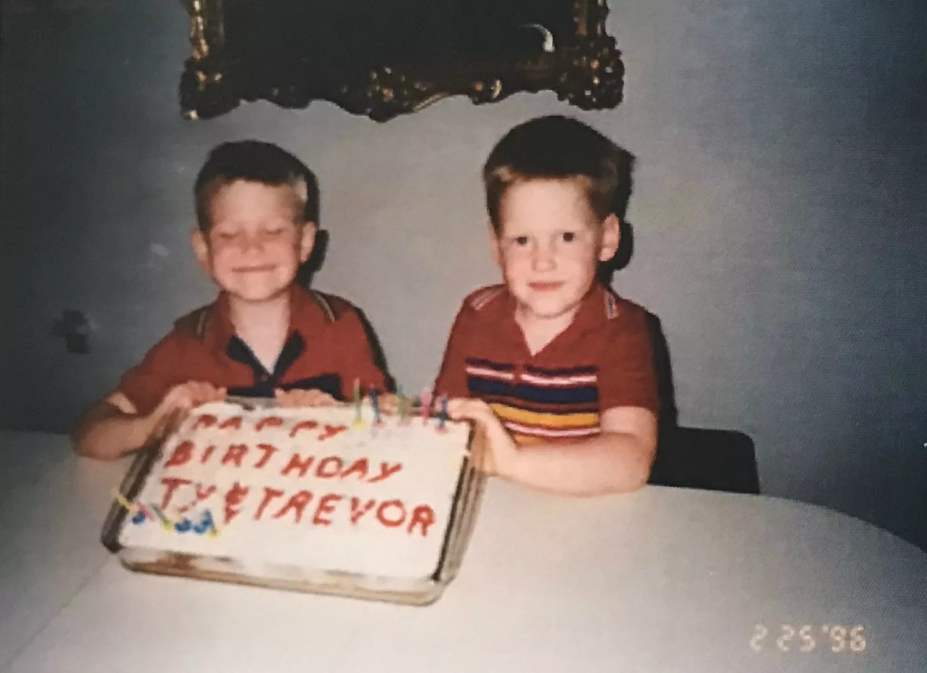 Ty and Trevor on their 6th and 5th birthdays in 1996.