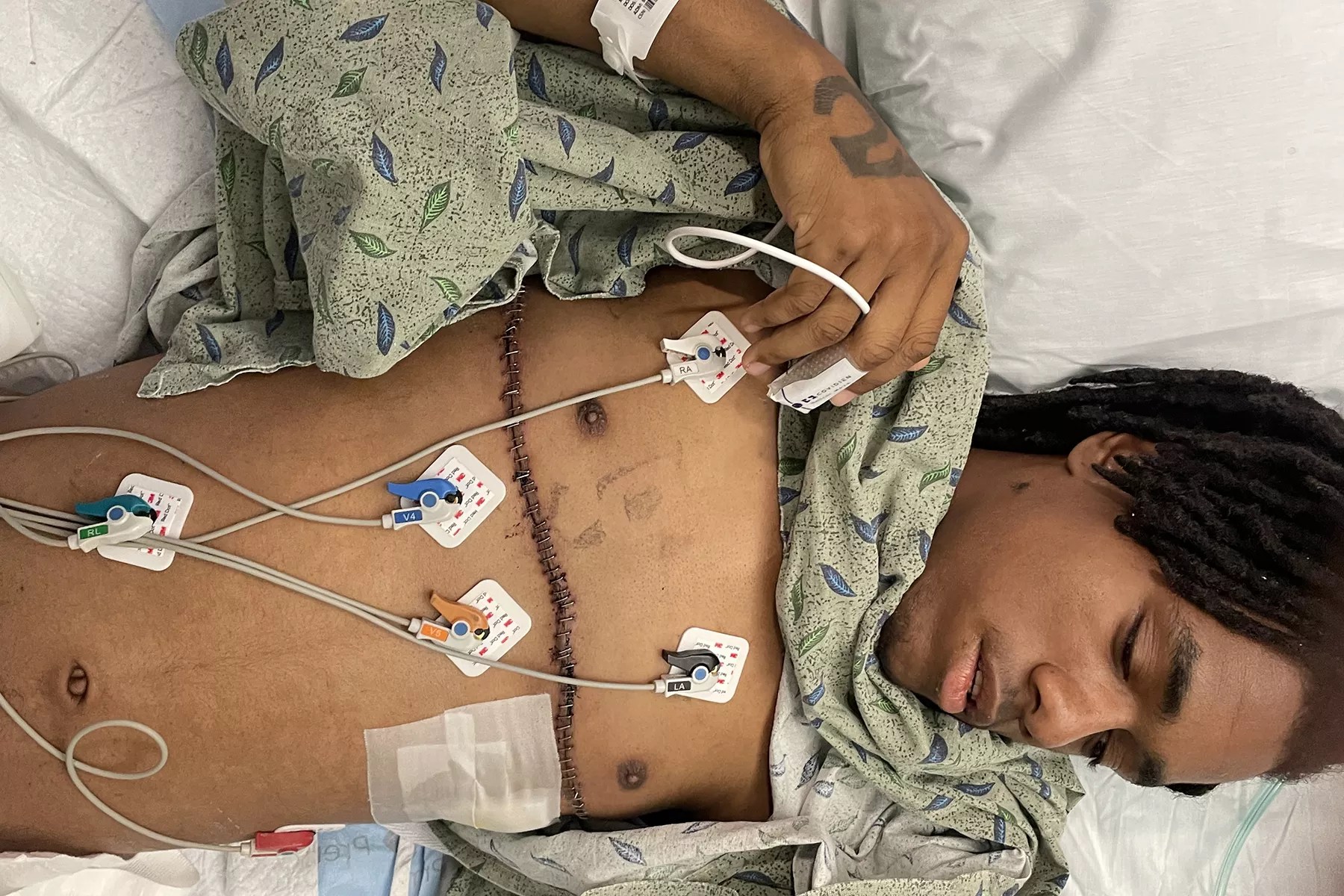 Devin Thompson in the hospital after being shot by Phoenix police on Aug. 1.