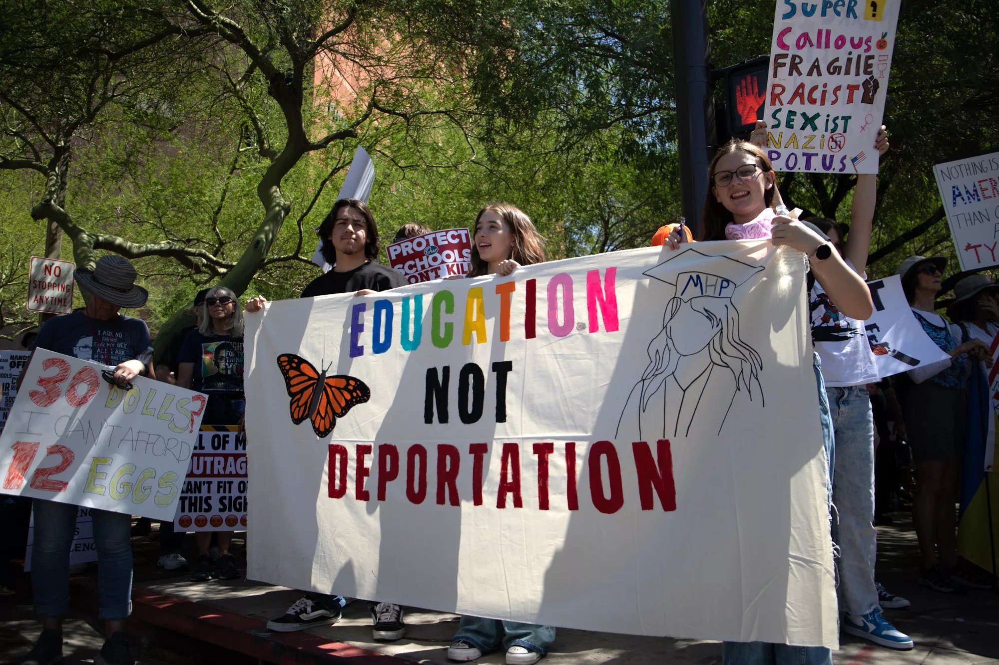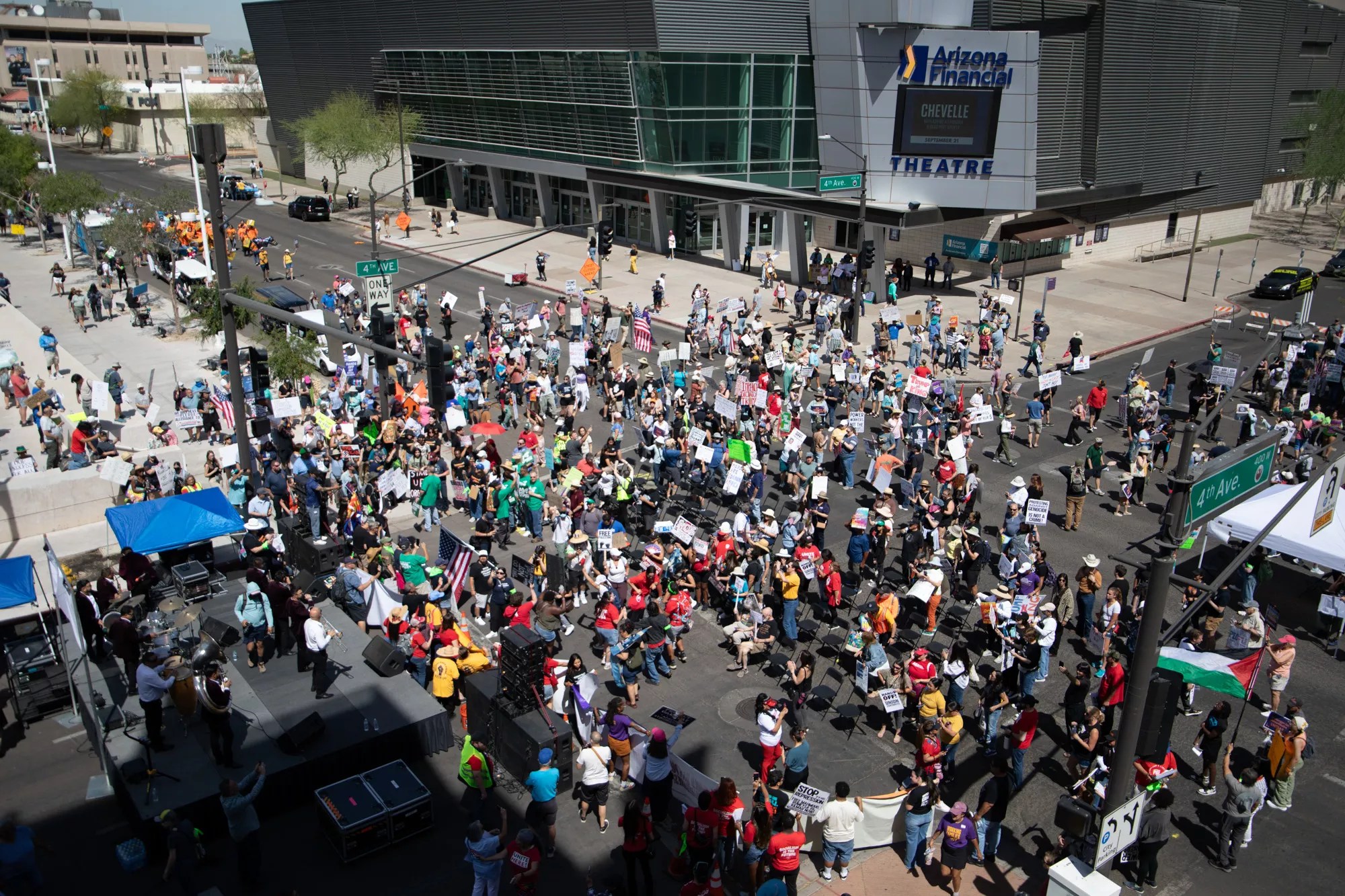 Dubbed the “May Day” protest – May 1 being a day historically used to advocate for worker rights – the event was organized by a host of groups, including Save Our Schools Arizona, Living United for Change in Arizona and Unite HERE Local 11.