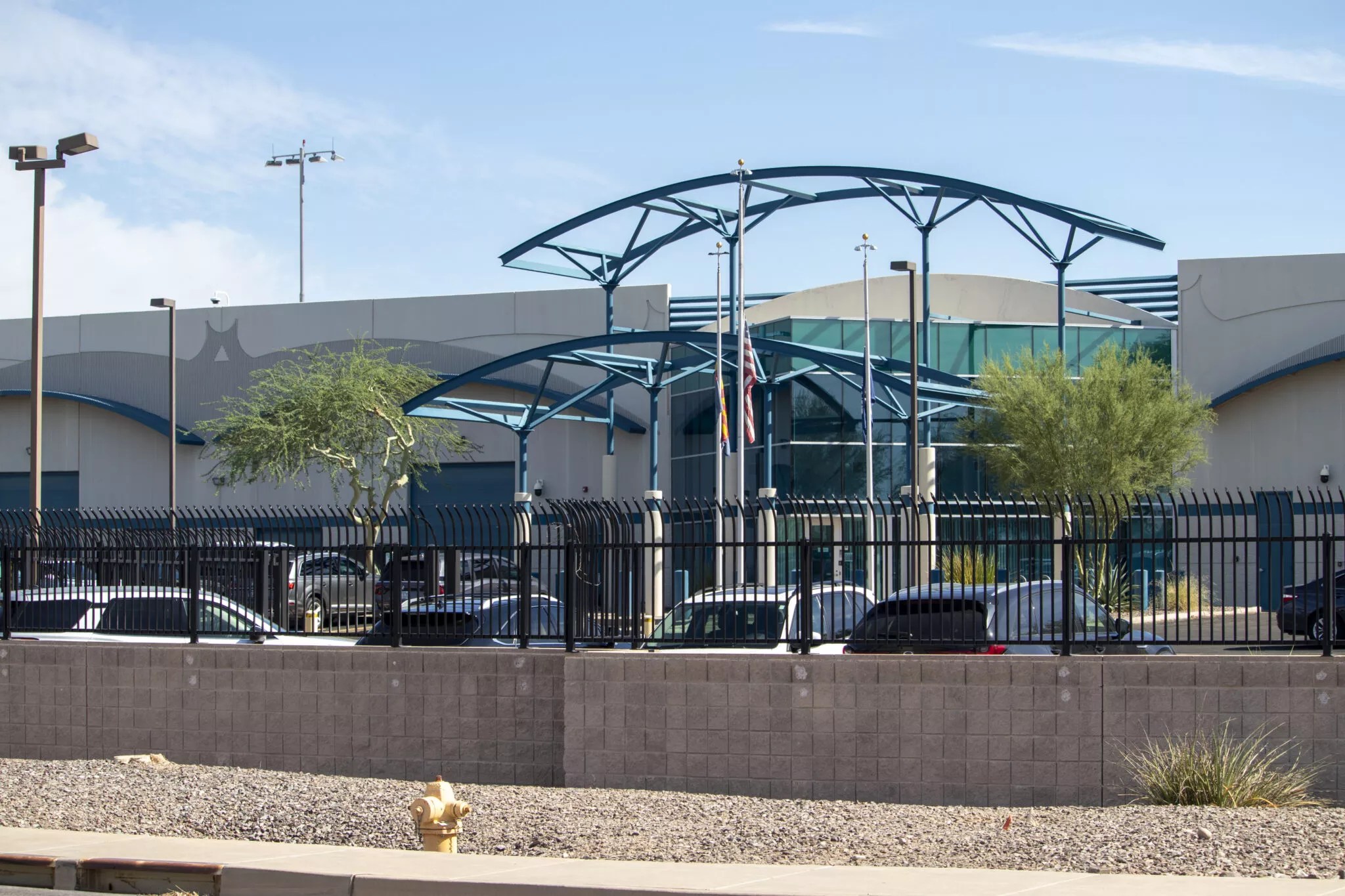 The Arizona Removal Operations Coordination Center at Phoenix-Mesa Gateway Airport houses a temporary holding facility for the U.S. Department of Homeland Security that houses people detained for immigration violations before they are either flown to long-term detention centers or are deported. (Photo by Jerod MacDonald-Evoy/Arizona Mirror)