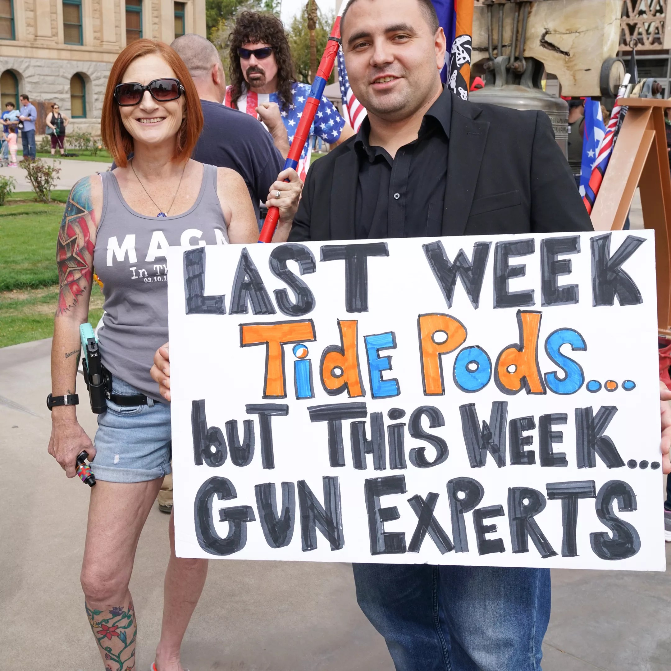 One of the other rally organizers was Jacob Martinez, who recently resigned as the chairman of the Arizona chapter of Teenage Republicans over his party’s position on guns. He told the crowd that despite the counter-protesters in the mix, their cause will win out in the end.