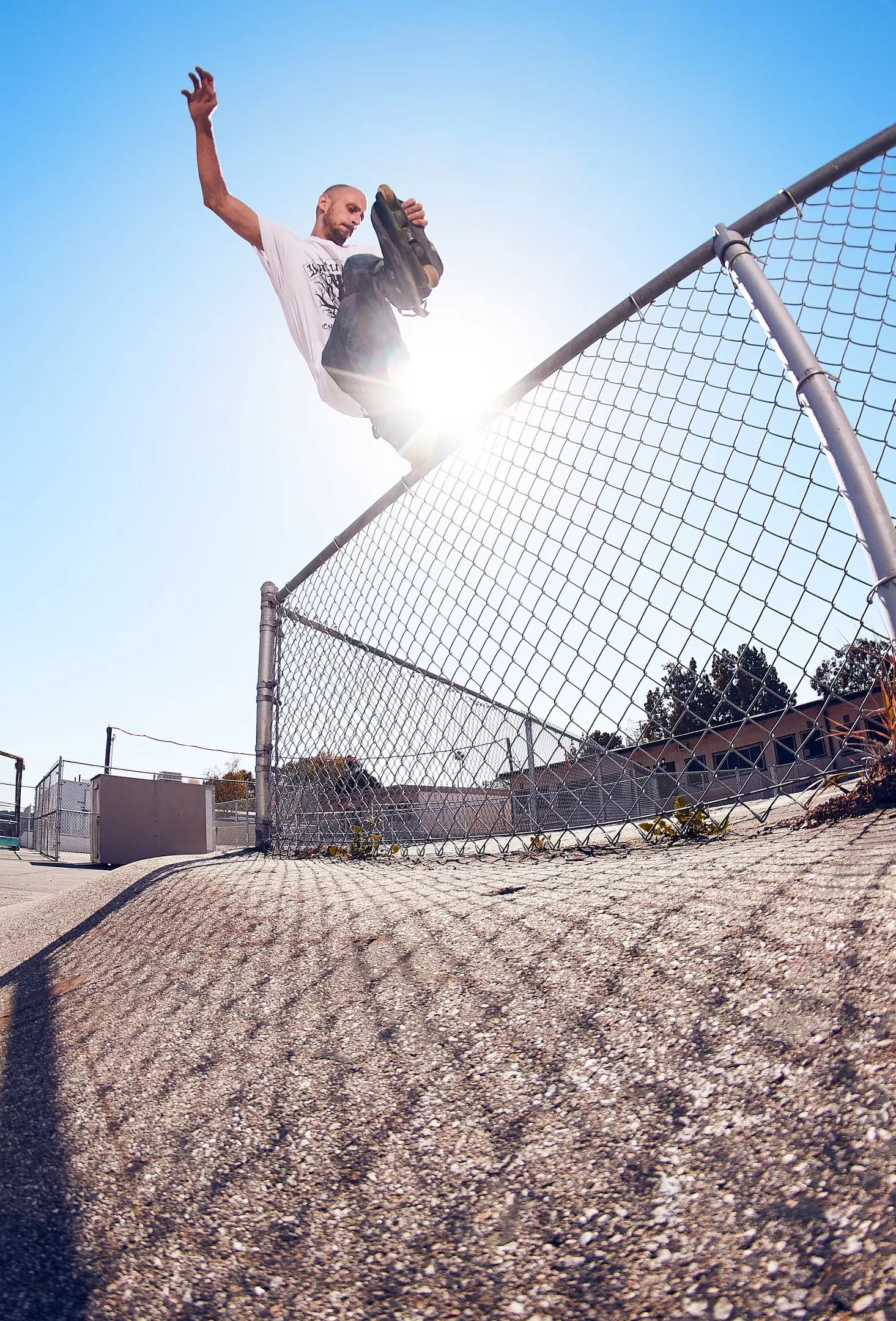 Chad Hornish grinds a chain-link fence in Phoenix.
