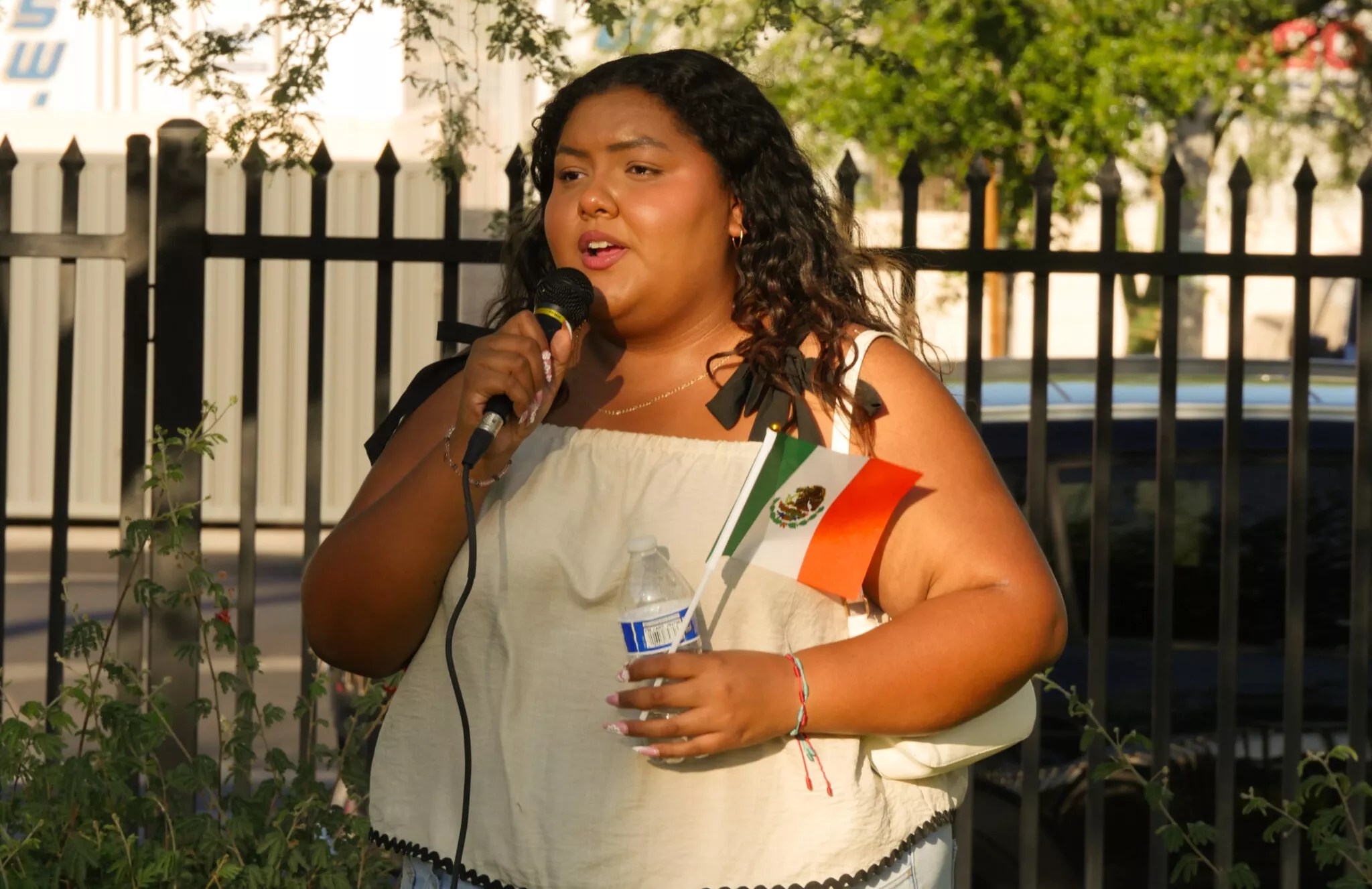 Joel Gutierrez’s daughter, 19, told a crowd assembled in Phoenix that her father is “honestly the best person there is” and said his detention was unjust. Photo by Emily Holshouser | Arizona Mirror