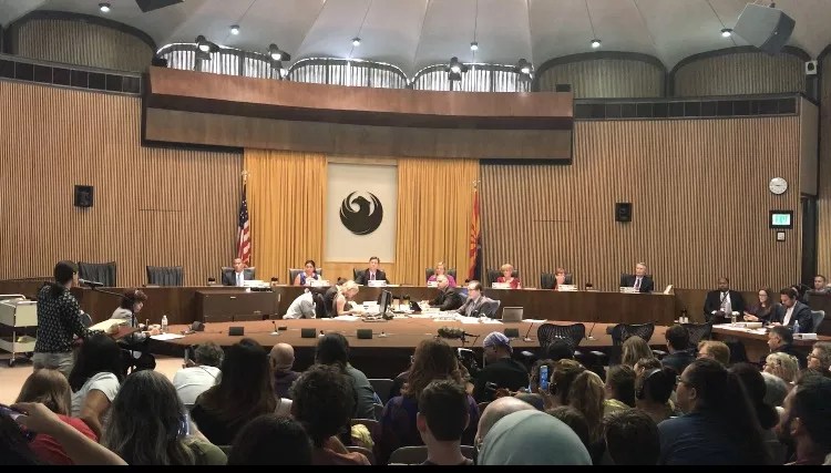 Phoenix residents flipped the script on the City Council Wednesday night when they took control of the meeting. Fueled by a mix of endurance, mob rule, and true democracy, the residents took center stage for five hours of public comment, denouncing the Phoenix police’s use of pepper balls and flash bombs after President Donald Trump’s rally at the convention center last week.