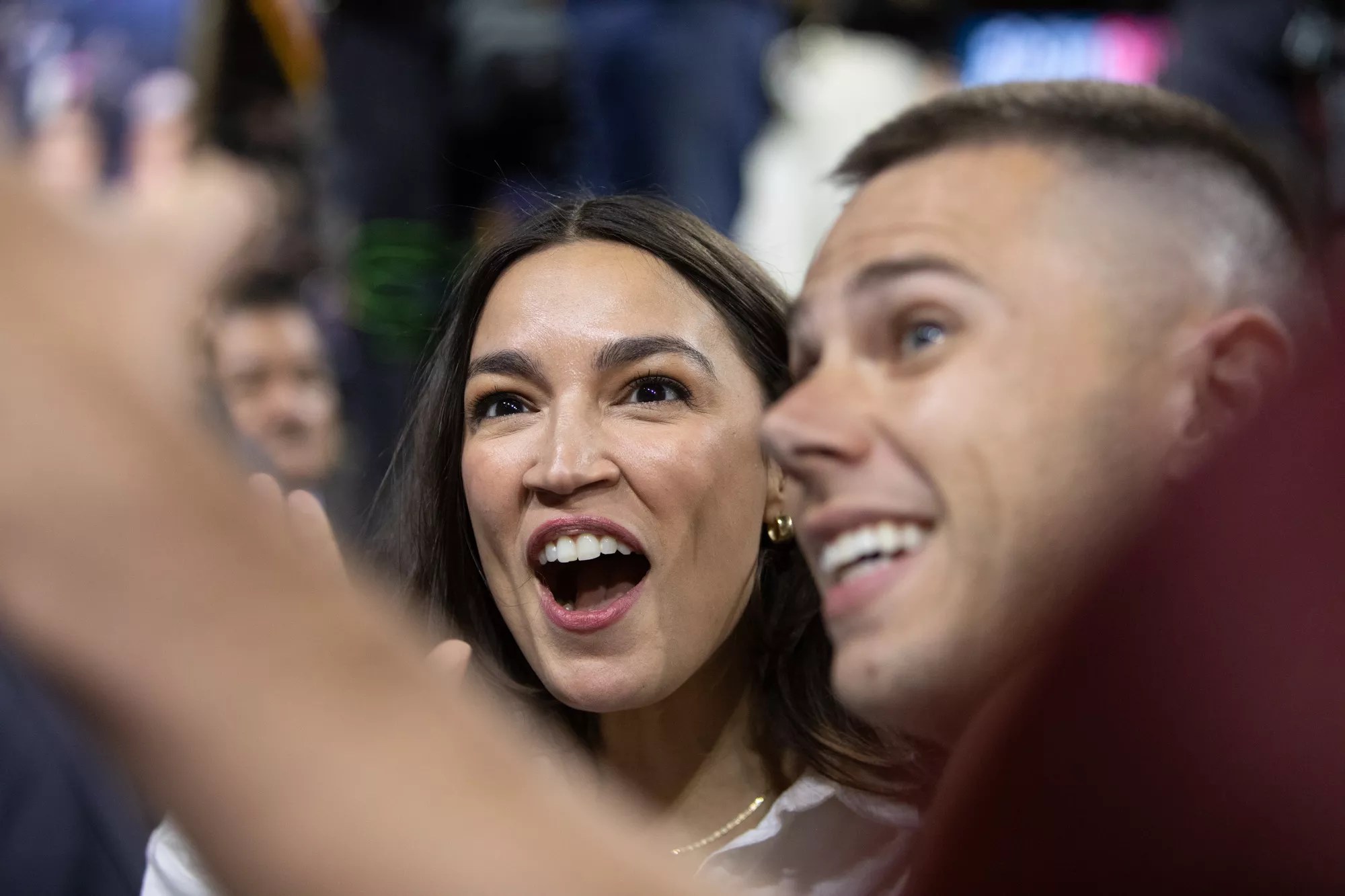 Sanders and Ocasio-Cortez took the time to greet attendees.