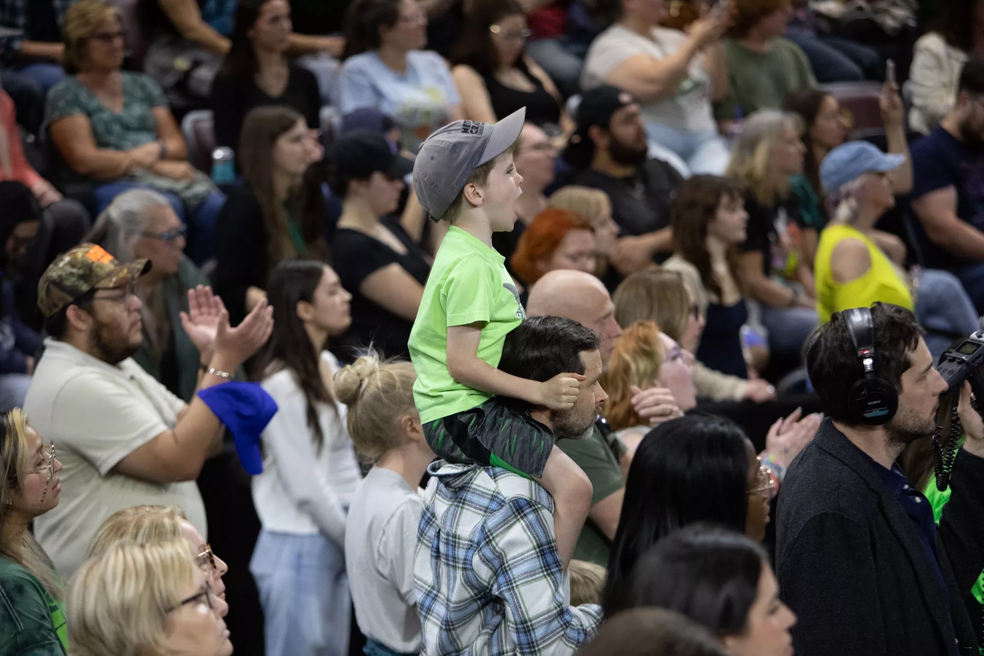 Mullett Arena seats 5,000, though extra seats were added where the hockey rink usually goes. The place was packed.