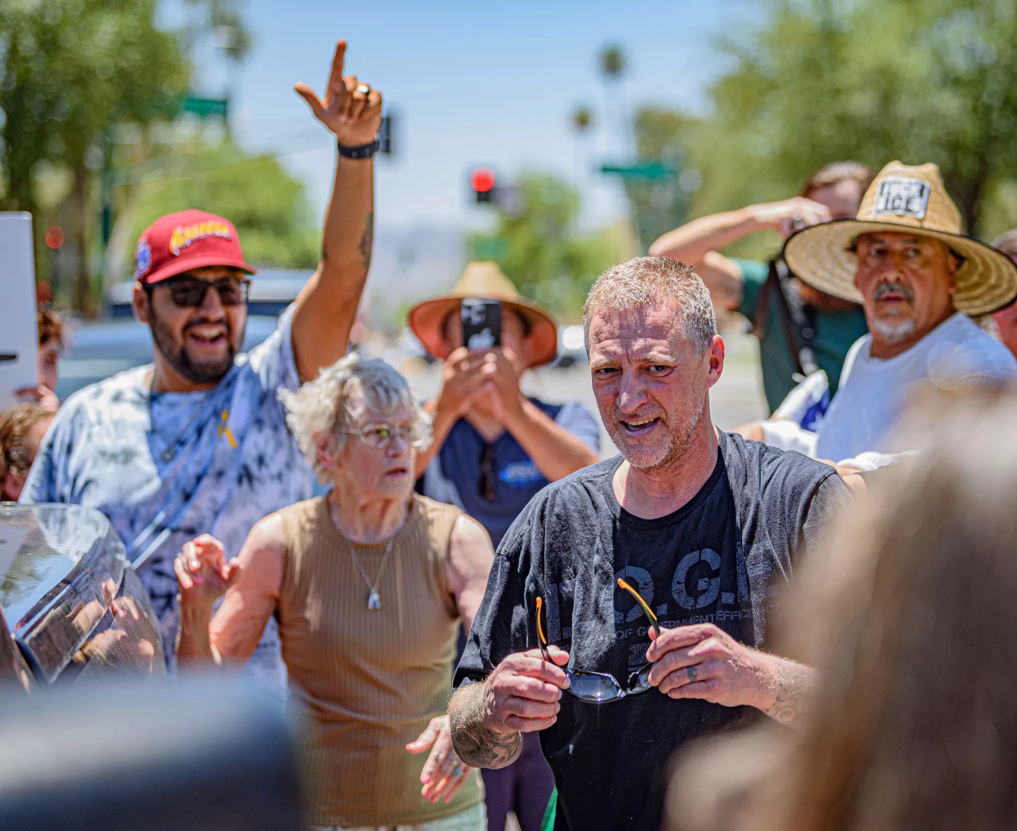 The protest outside the Capitol was unlike any show of dissatisfaction in recent memory – a swarm of people spanning as far as the eye can see, carrying signs ranging from the philosophical to the crude to the very random. The atmosphere was lively but contained, dimmed by weather that reached 100 degrees by noon. Crowds of people also protested at several other sites in the Valley and in the state, but the Capitol gathering was by far the largest.