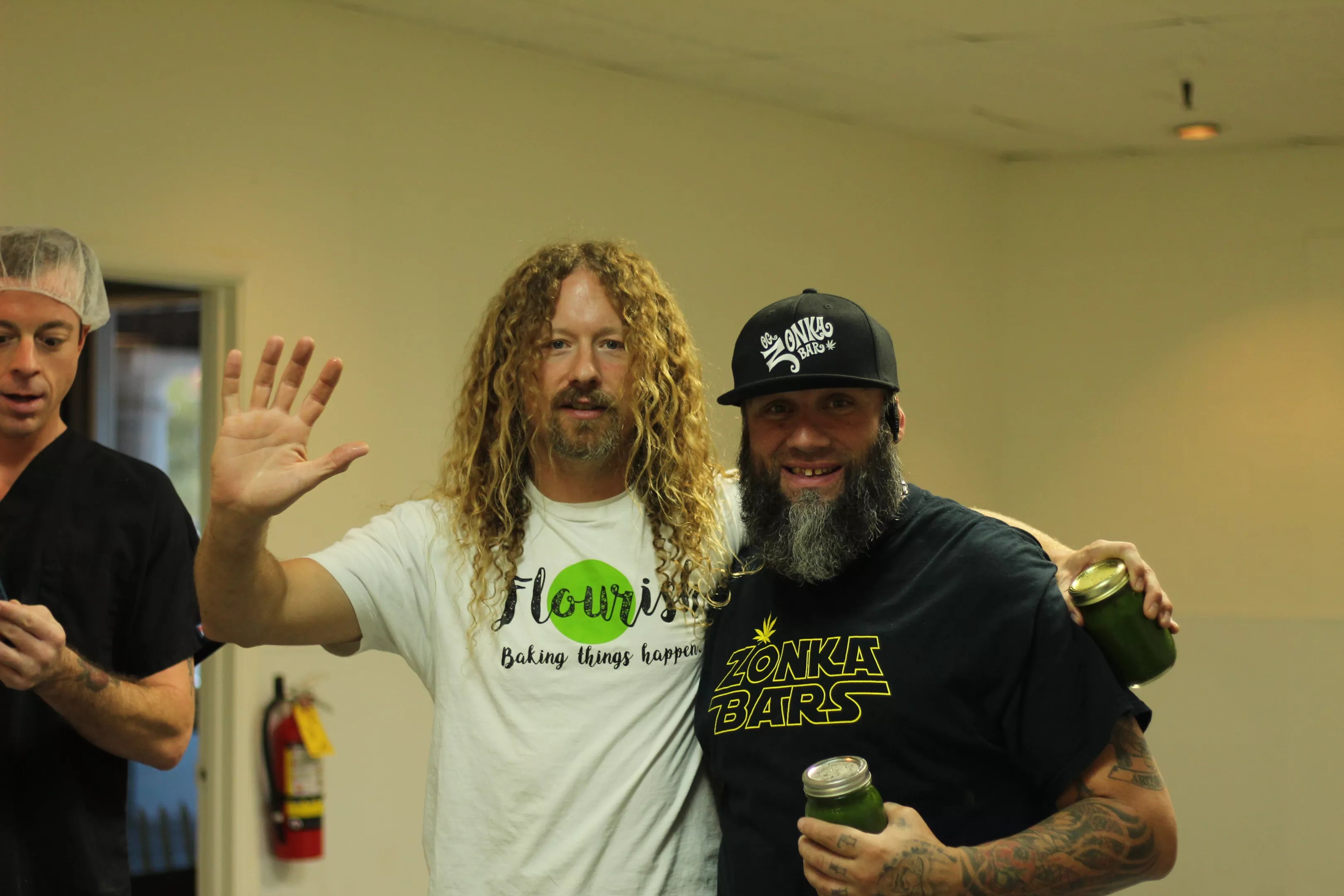 Payton Curry (left) of Flourish – an Arizona line of THC-infused edibles – with Hempful Farms founder Chris Martin (right).