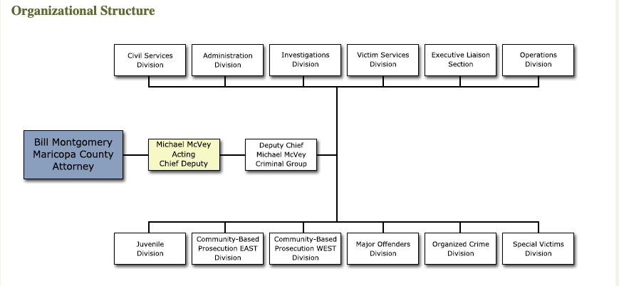 Neither Gage, McVey, or Montgomery responded to an email seeking comment. But McVey retained an attorney after being contacted by New Times. His attorney, Paul McGoldrick, sent a letter to the publisher of Phoenix New Times and the editor, Stuart Warner. The letter stated that McVey “never supervised either Lt. Gage or anyone in the Investigations Division of MCAO” during the time he served as acting chief deputy.