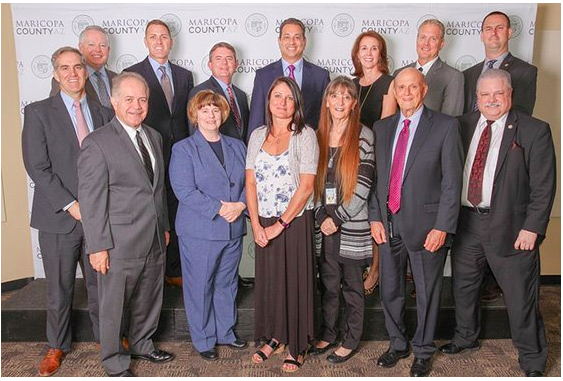 Members of the Maricopa County Attorney’s Office, including Mike McVey (front row, far left), Rachel Mitchell (front row, to McVey’s right), and Mark Faull (front row, far right).