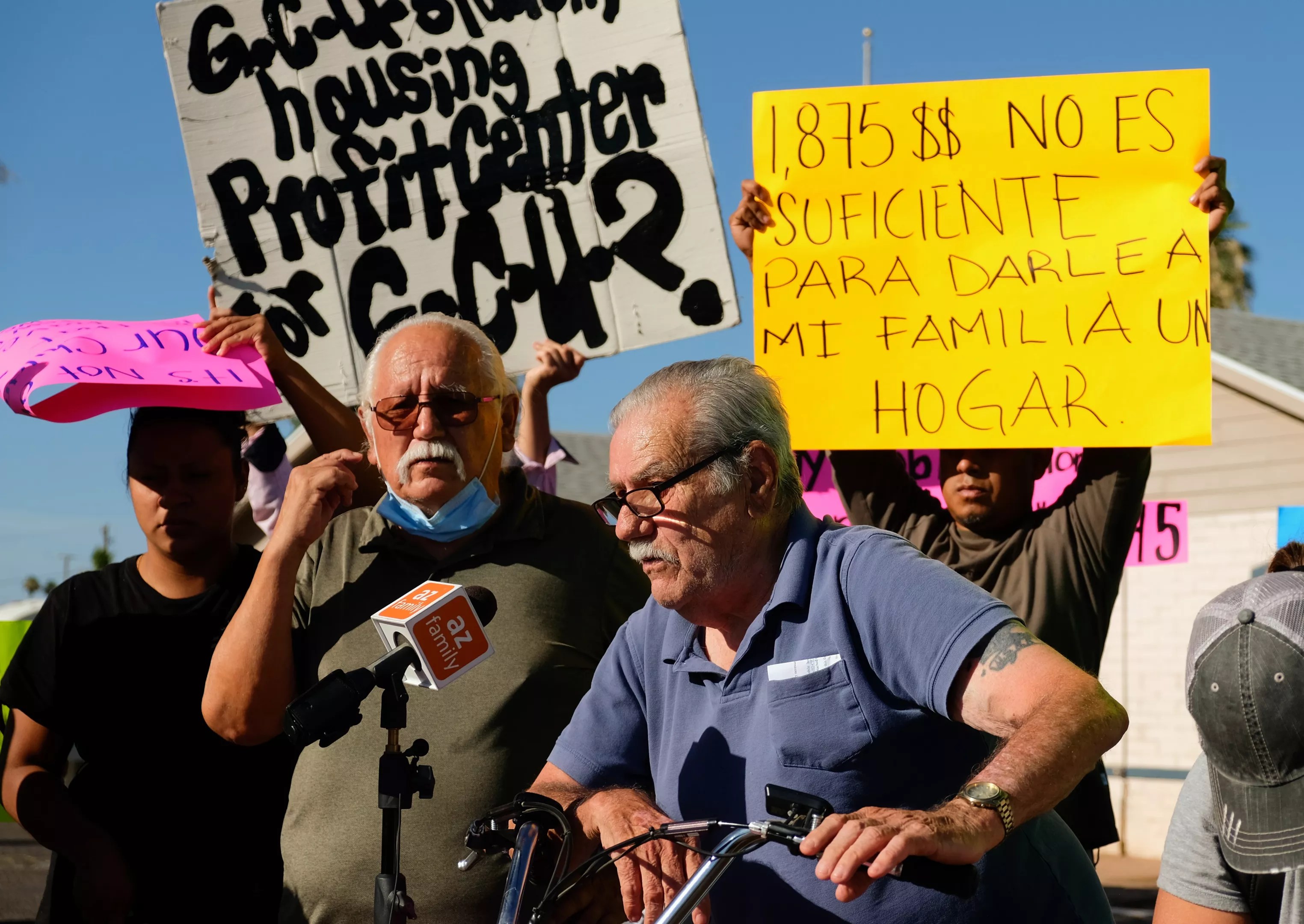 “Injustices like this are not just happening here. They’re happening everywhere, especially to poor families,” longtime Phoenix organizer Salvador Reza told the crowd on Tuesday. Reza has focused on organizing trailer park residents lately. He also worked with the residents of the Mesa trailer park who were threatened with an eviction. After protests, and media reports, the property owner rescinded the notice, and has not yet issued a new one.