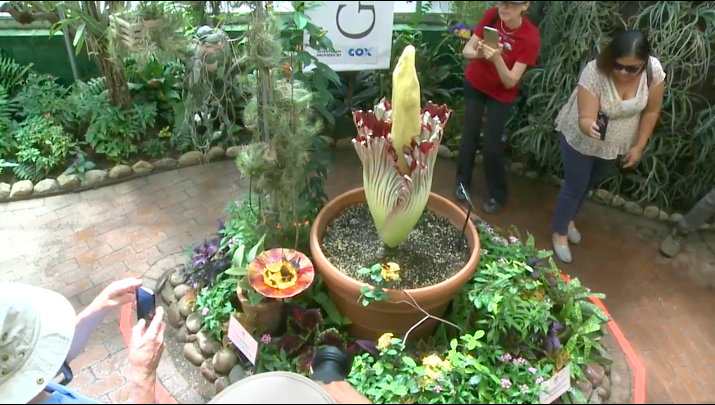 According to the Tucson Botanical Garden, Rosie – that’s the corpse flower’s name – is probably nine years old. This will be her first time flowering, and she’s doing an amazing job so far.