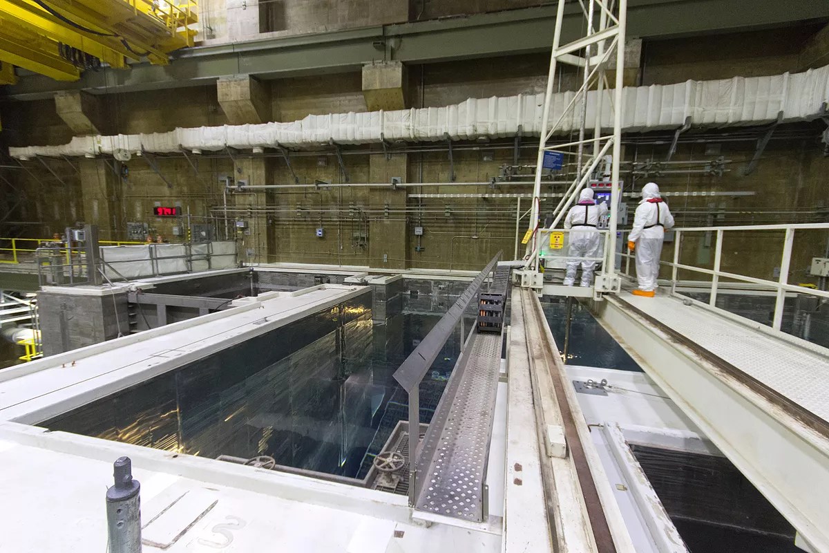 During refueling, spent fuel rods are moved into this area and new nuclear material is moved into the reactor chamber.