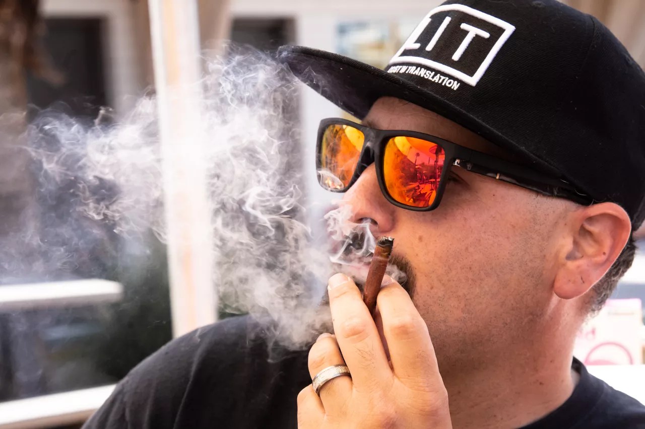 CannaBlendz regional marketing manager, Stephen Vega, enjoyed a stuffed spliff while waiting for the festival to get underway.
