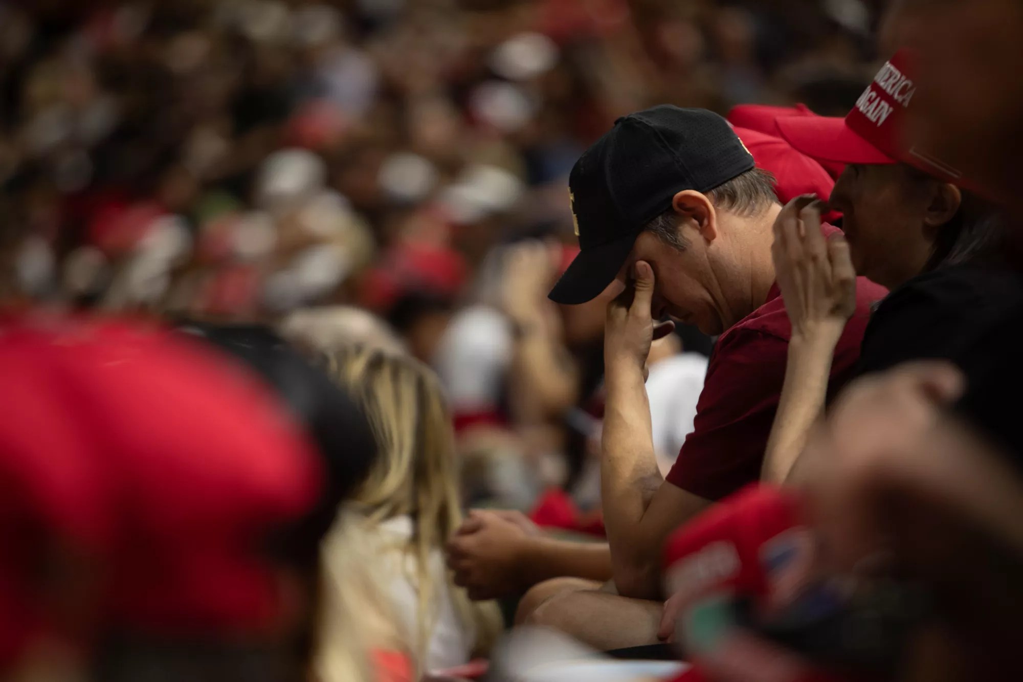 Roughly 7,000 attended what was billed as a vigil for Kirk by Turning Point USA, the Phoenix-based political organization the 31-year-old Kirk founded in 2012. Each attendee received a MAGA hat – with the American flag on one side and Turning Point’s logo on the other – and was encouraged to register to vote.