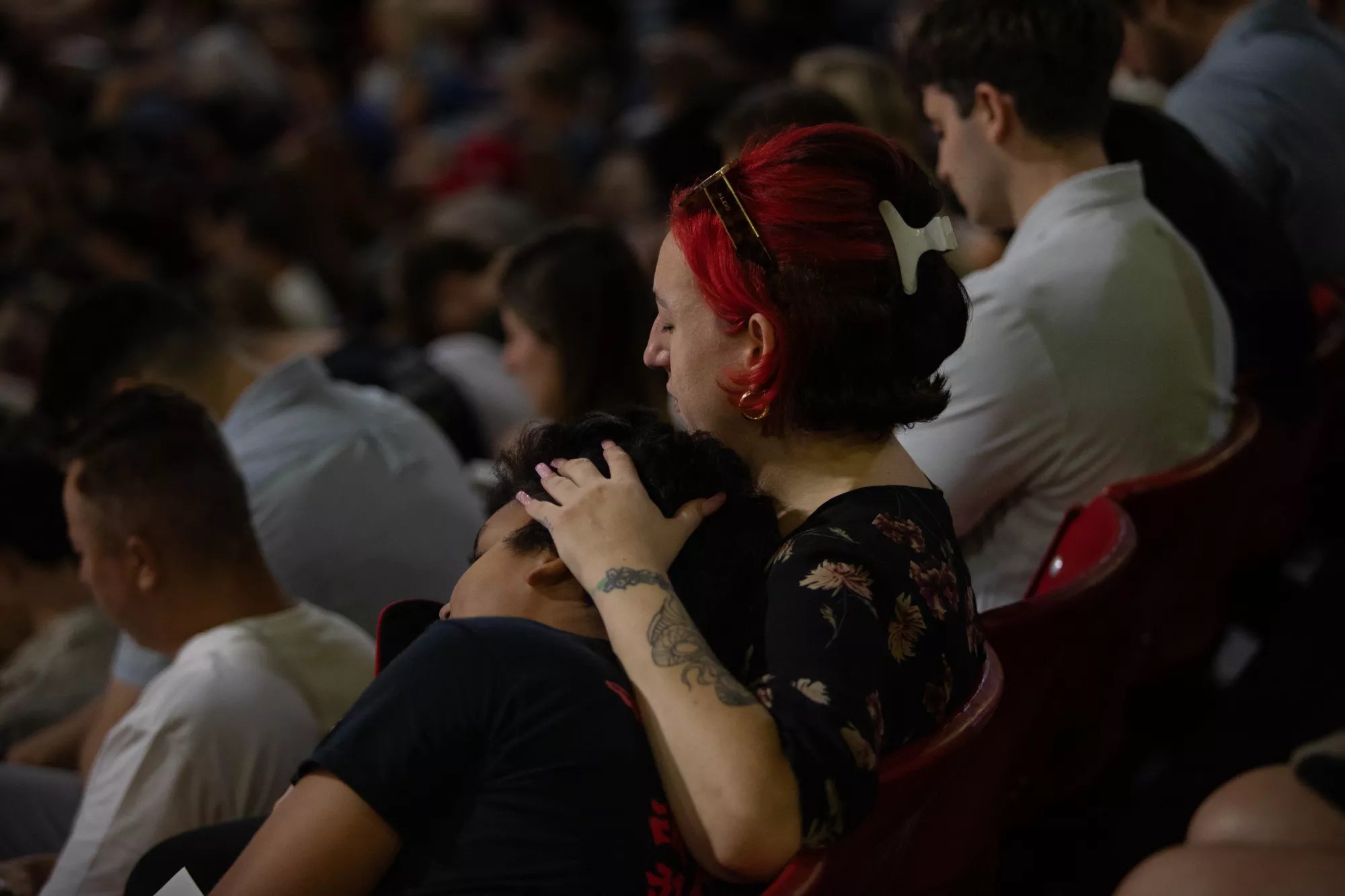 Over two and a half hours, several Kirk associates – including some of the most far-right figures in Republican politics – held candles and made remarks to a crowd that included children, senior citizens and all ages in between. Speakers stood on an elevated black stage in the middle of the stadium’s floor, with red-white-and-blue bouquets and photos of Kirk behind them. At times, chants of “Charlie, Charlie, Charlie” and “USA, USA, USA” filled the air.