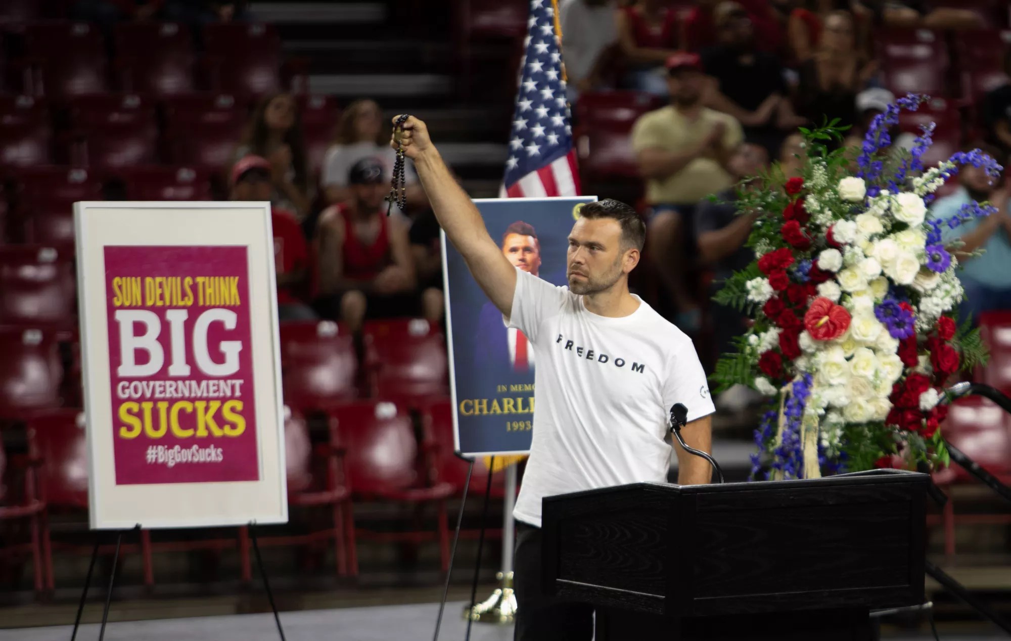 A sea of “MAKE AMERICA GREAT AGAIN” hats filled Desert Financial Arena in Tempe on Monday night as thousands filled the Arizona State University facility to pay homage to Charlie Kirk, the far-right firebrand and activist who was assassinated last week in Utah.