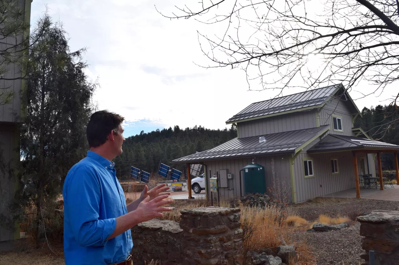 Grand Canyon Trust executive director Ethan Aumack in the backyard of the nonprofit’s office in Flagstaff.