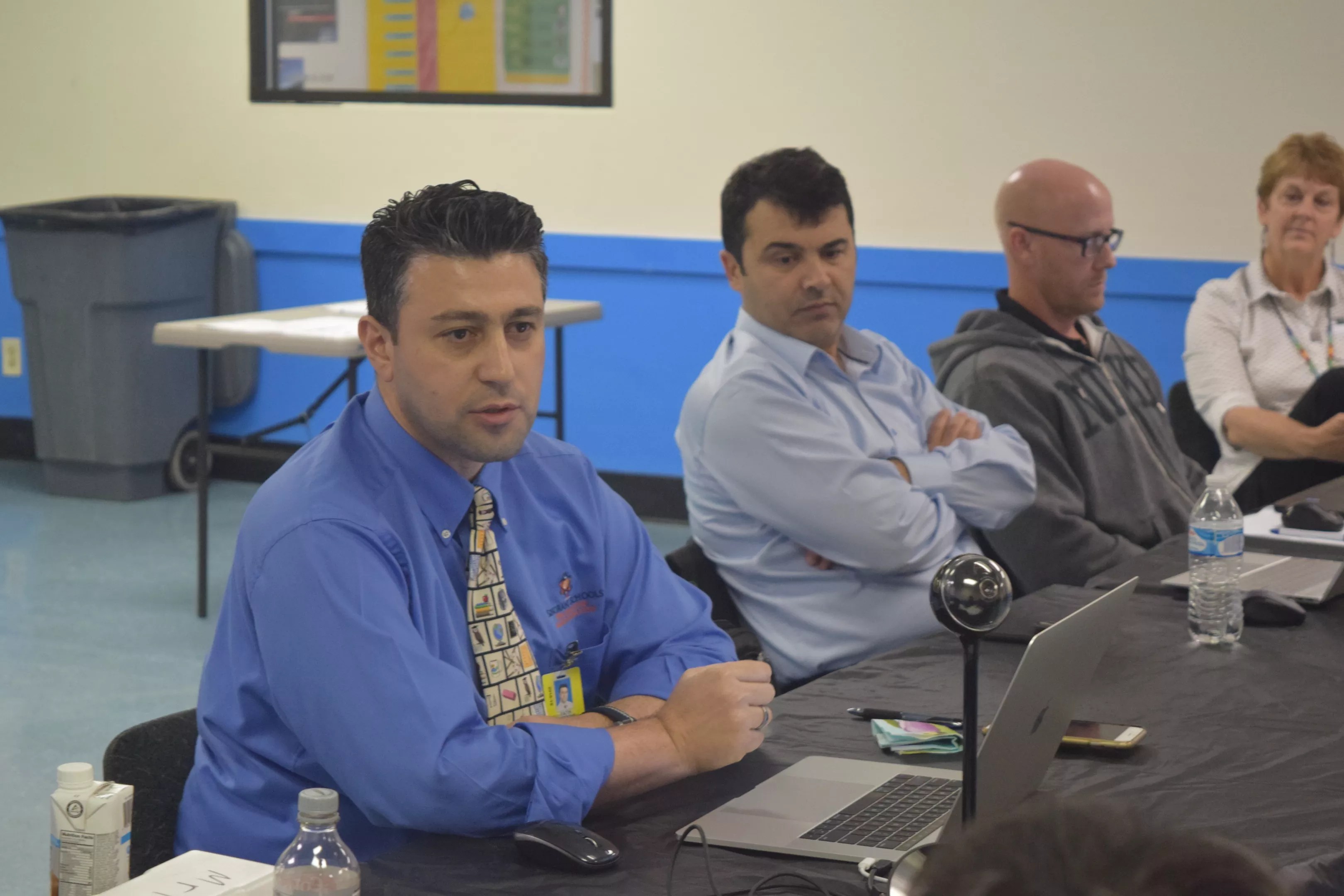 Left: Fatih Karatas, the CEO of Sonoran Schools, at a December 6 governing board meeting for the charter network. To the right is Tuncay Celik, the charter network’s CFO.