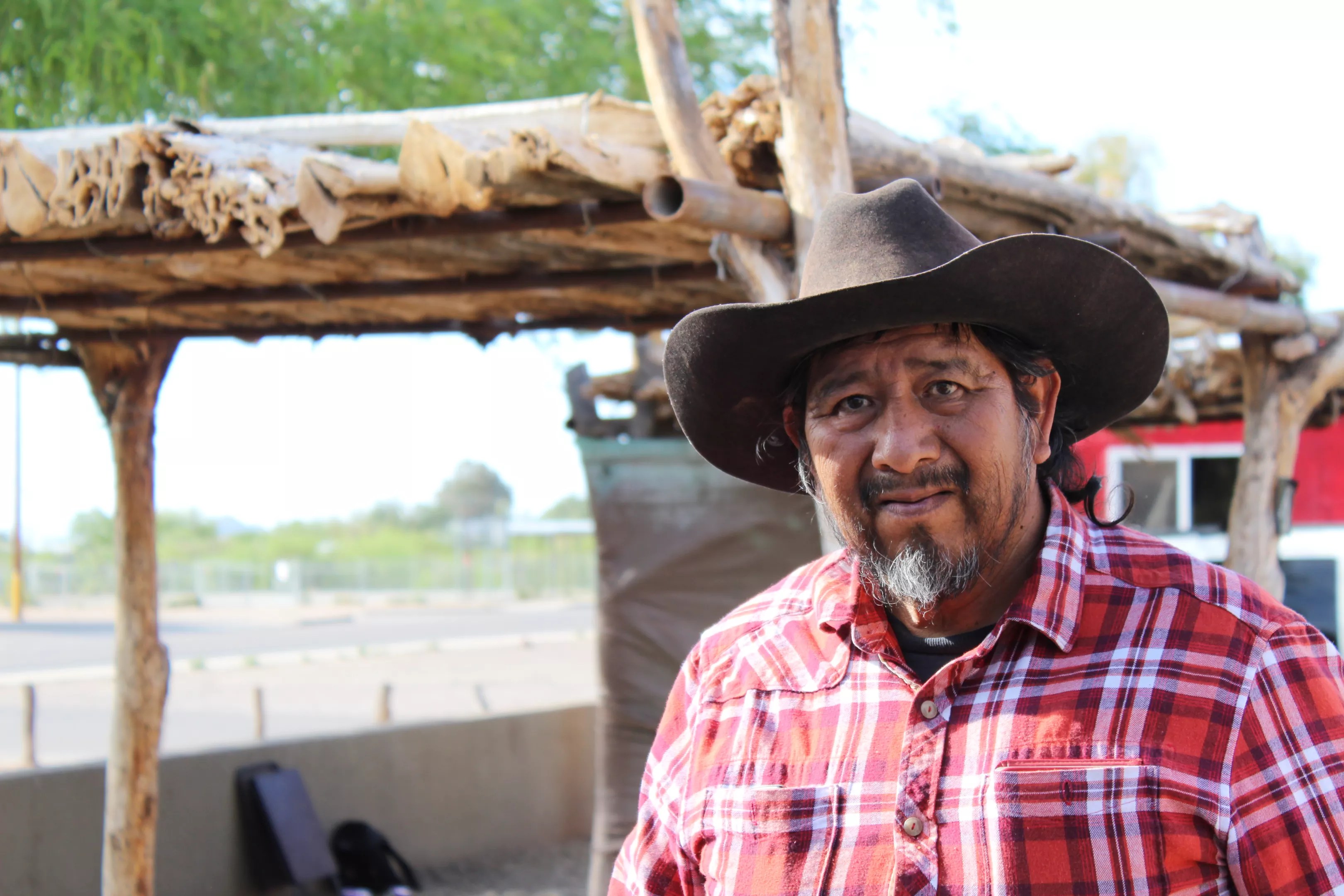 “I’ve lived in towns before – I’d rather be here,” said a middle-aged O’odham man sitting with a woman on a porch bench on a Monday afternoon in April.