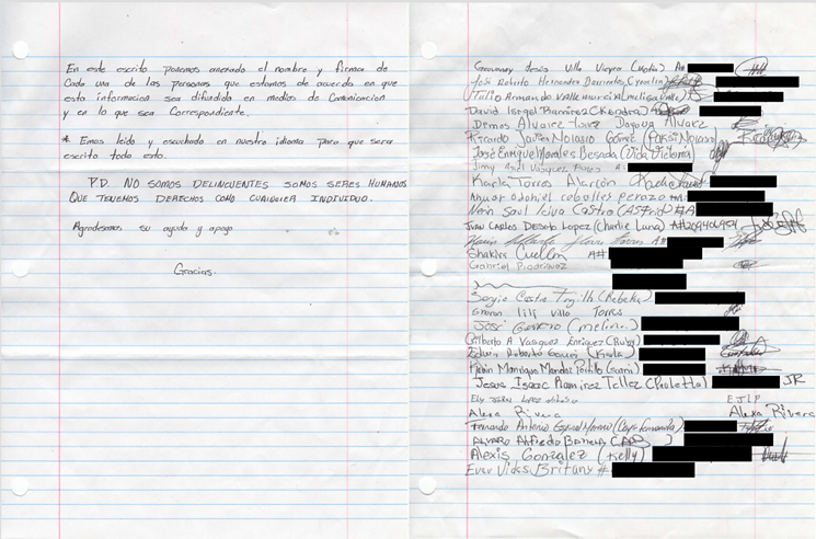 The 29 migrant detainees from Cibola, who signed with their full names and identifying "A-numbers," ask for the national and international human rights community to launch an official investigation into the facility.