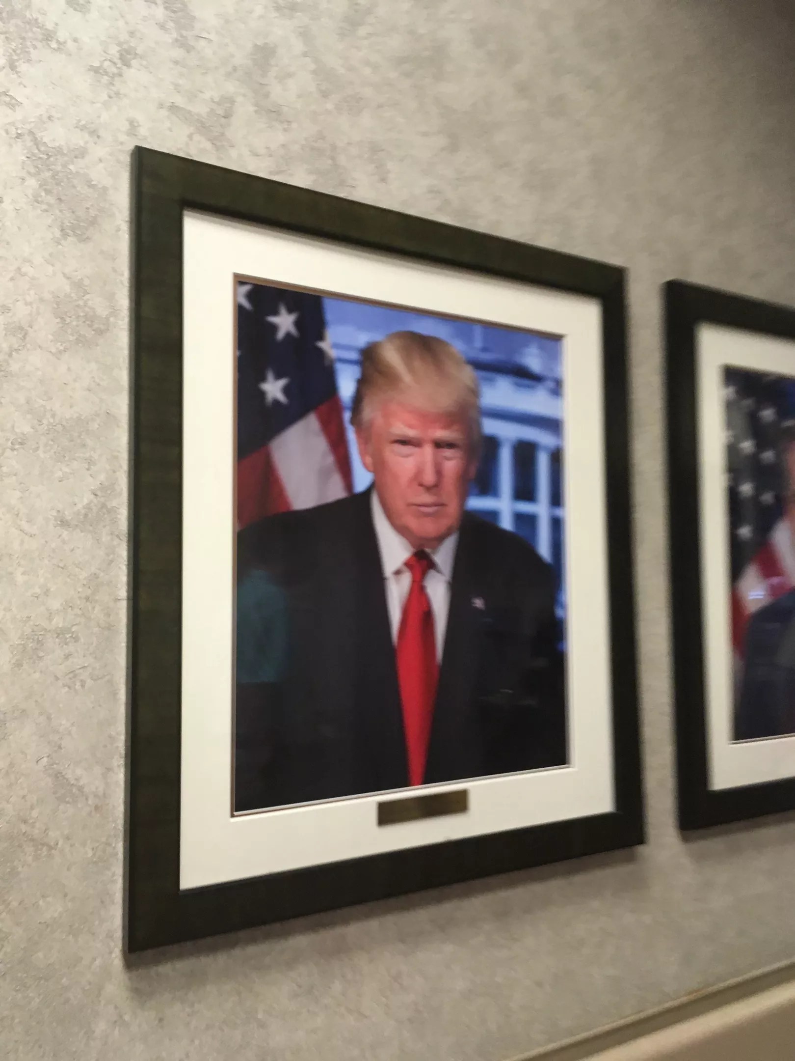 Sue McConnell tries to avoid looking at a portrait of President Donald Trump in the Tucson VA.