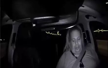 In the video of the interior of the crash vehicle released by Uber, Vasquez can be seen glancing down near the center console and smirking, as if she’d just seen or heard something amusing just before she looks up in surprise before the crash.