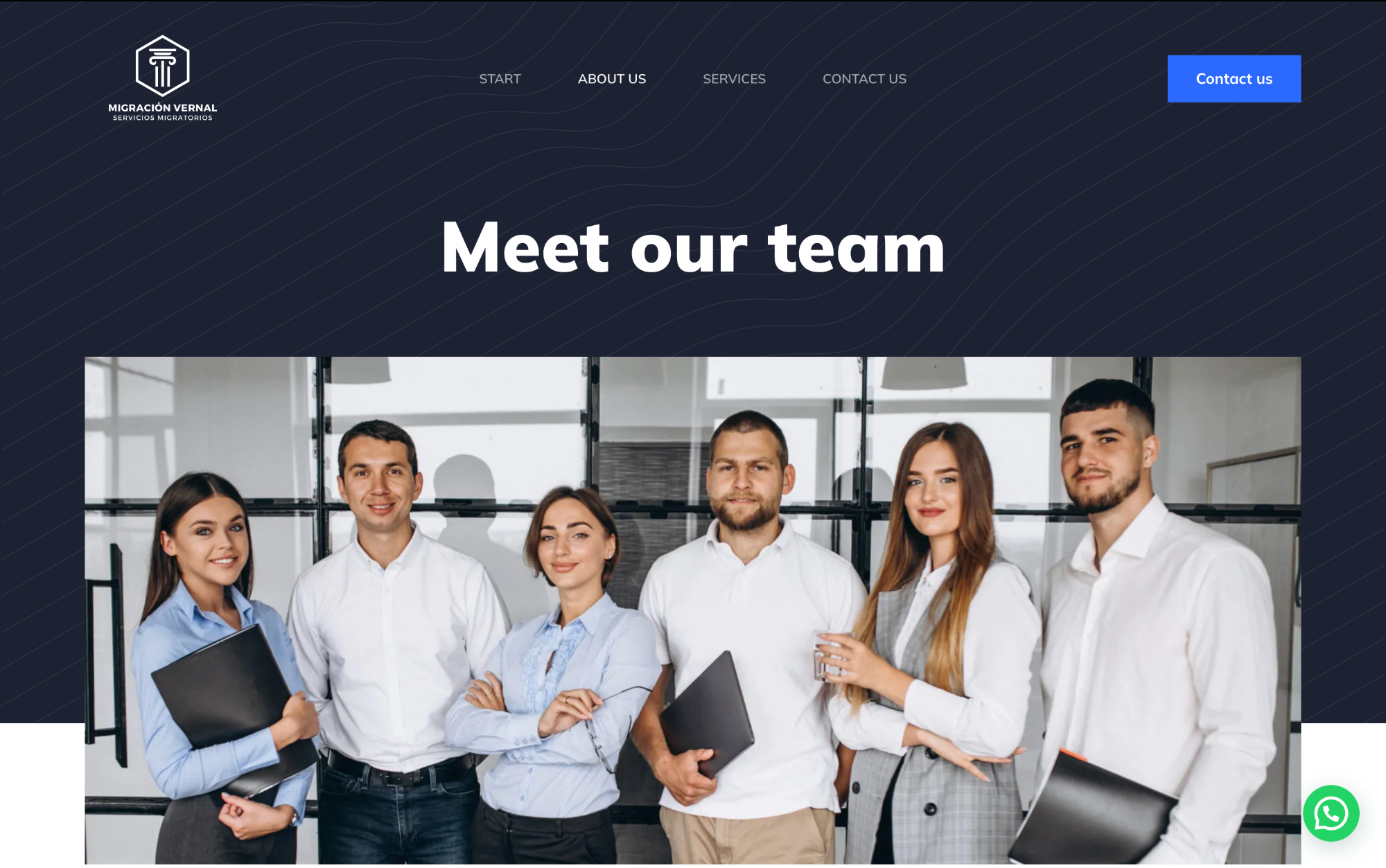 A screenshot of Migracion Vernal’s website. The photo used is a stock image.