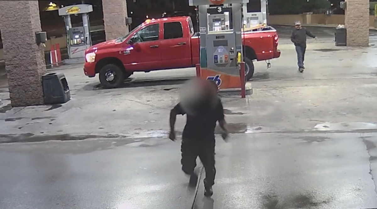 Gas station security camera footage showed Santos, near the red truck, reaching toward his waistband, though the footage never showed him with a gun.