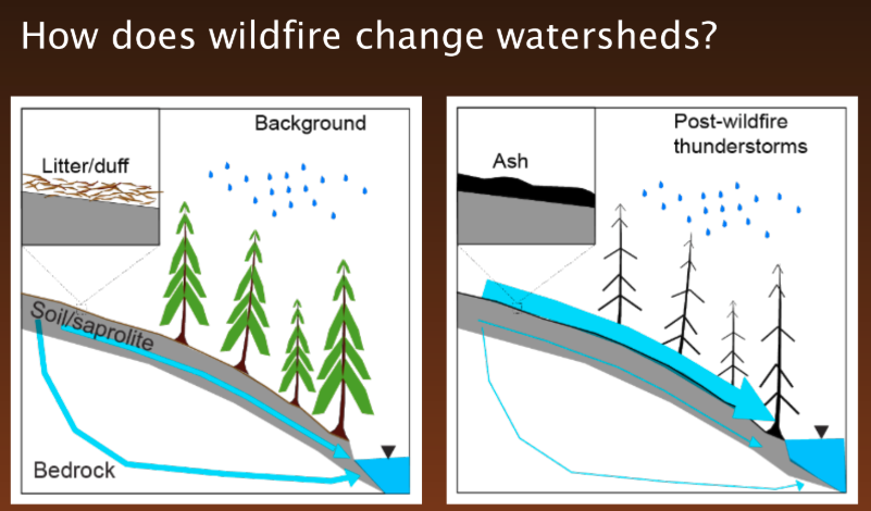 Those factors including the timing and type of precipitation, the location, land cover, land grade, and previous land uses. Murphy said she is trying to study weather patterns that impair water quality after wildfires.