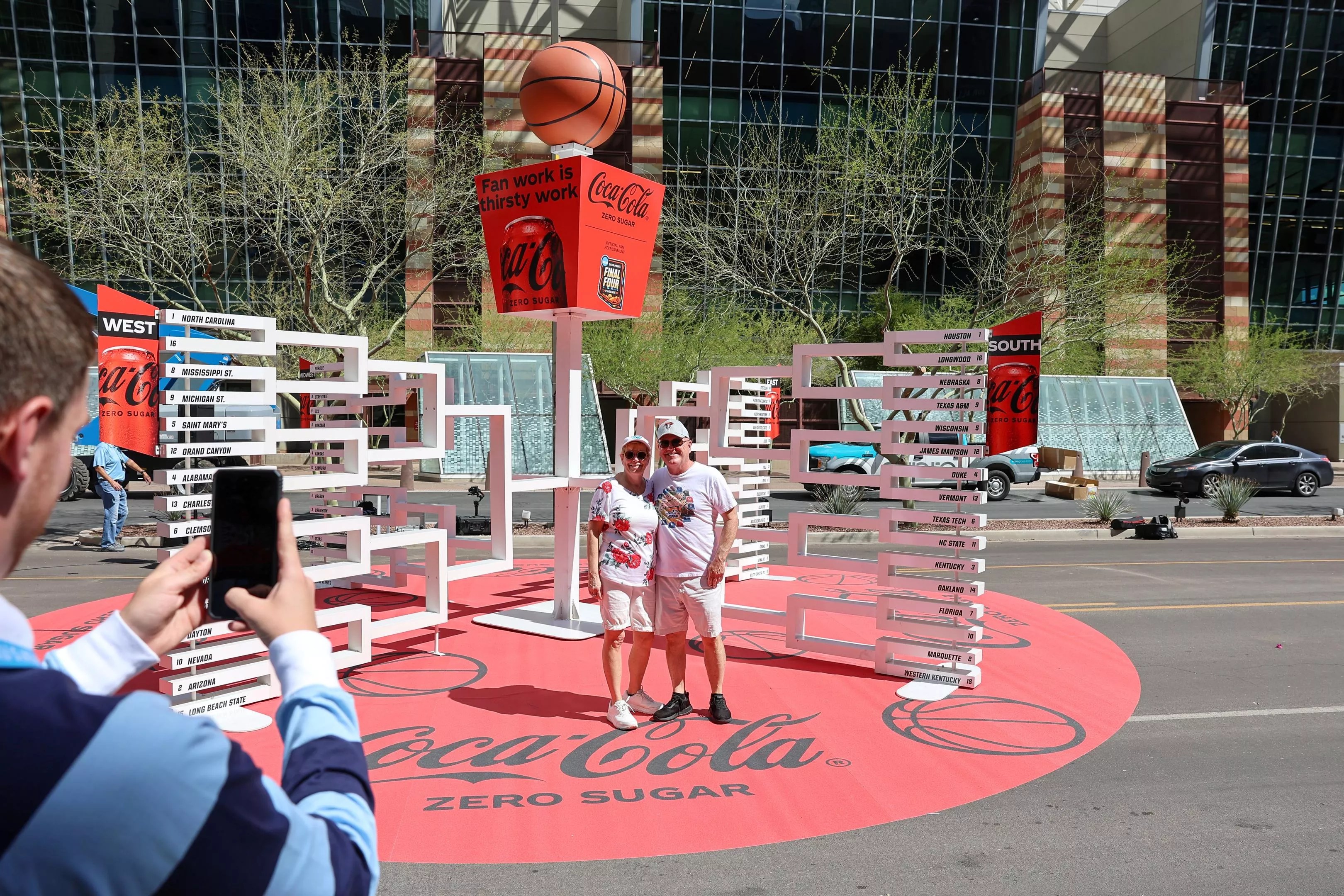 A 3D bracket for the NCAA Men’s Basketball Tournament was unveiled in downtown Phoenix on March 19.