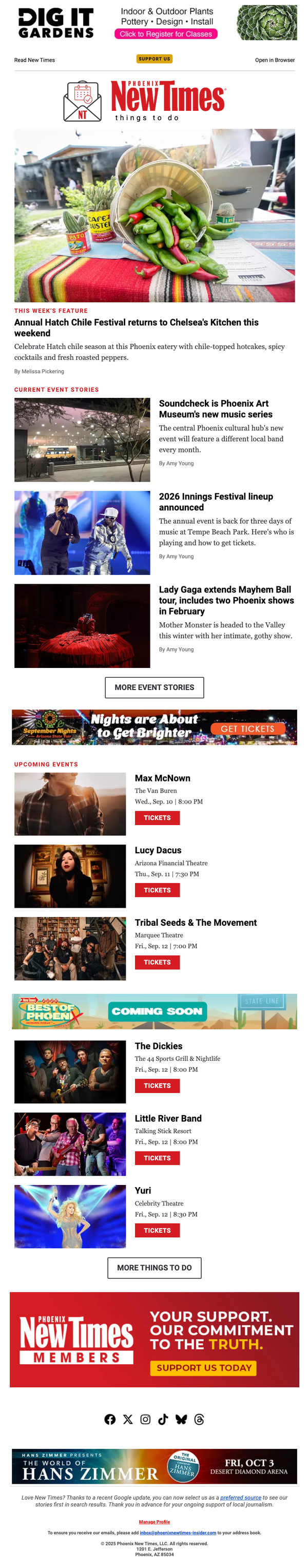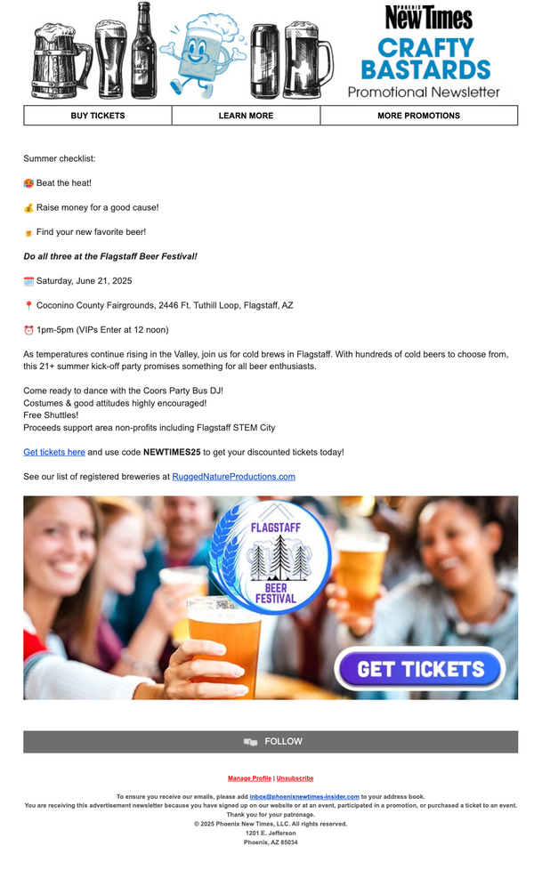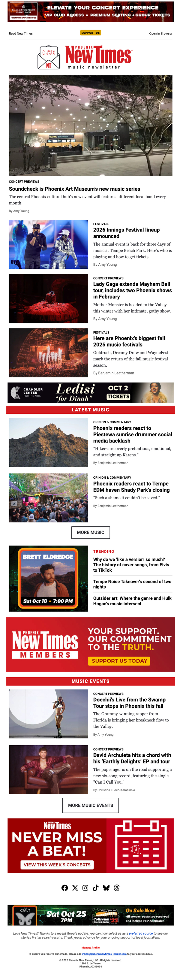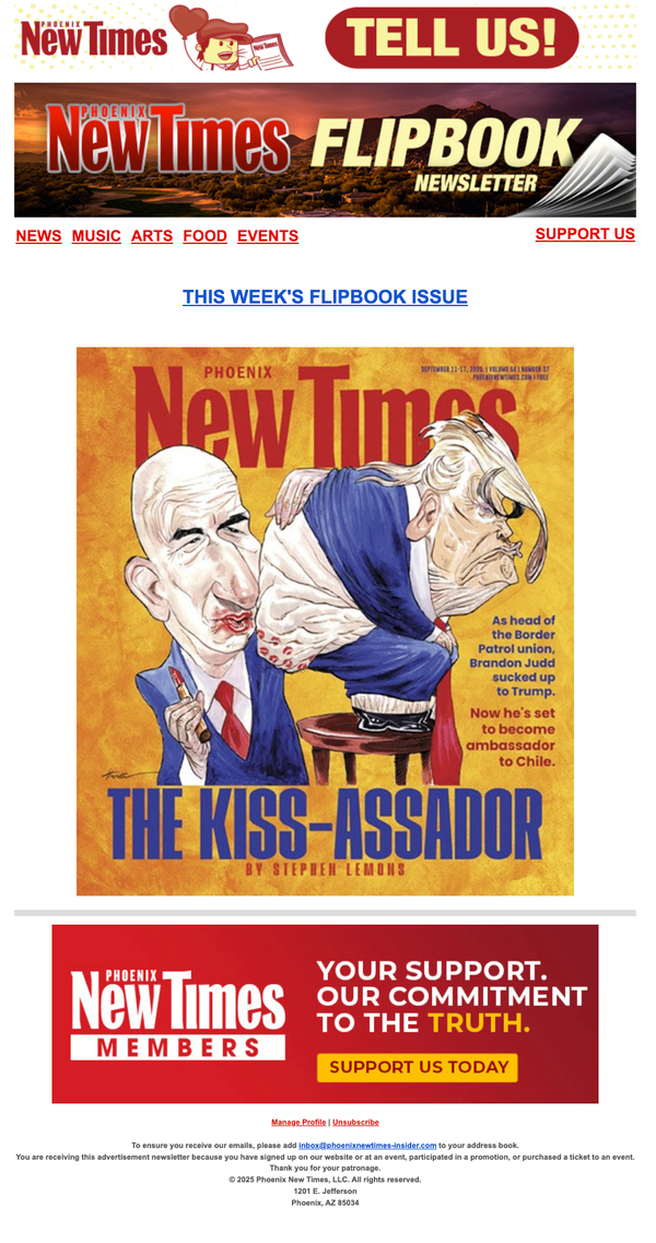 Stay informed with our daily digest of the most popular news, music, food and arts stories in Phoenix. Delivered every morning Monday through Friday.