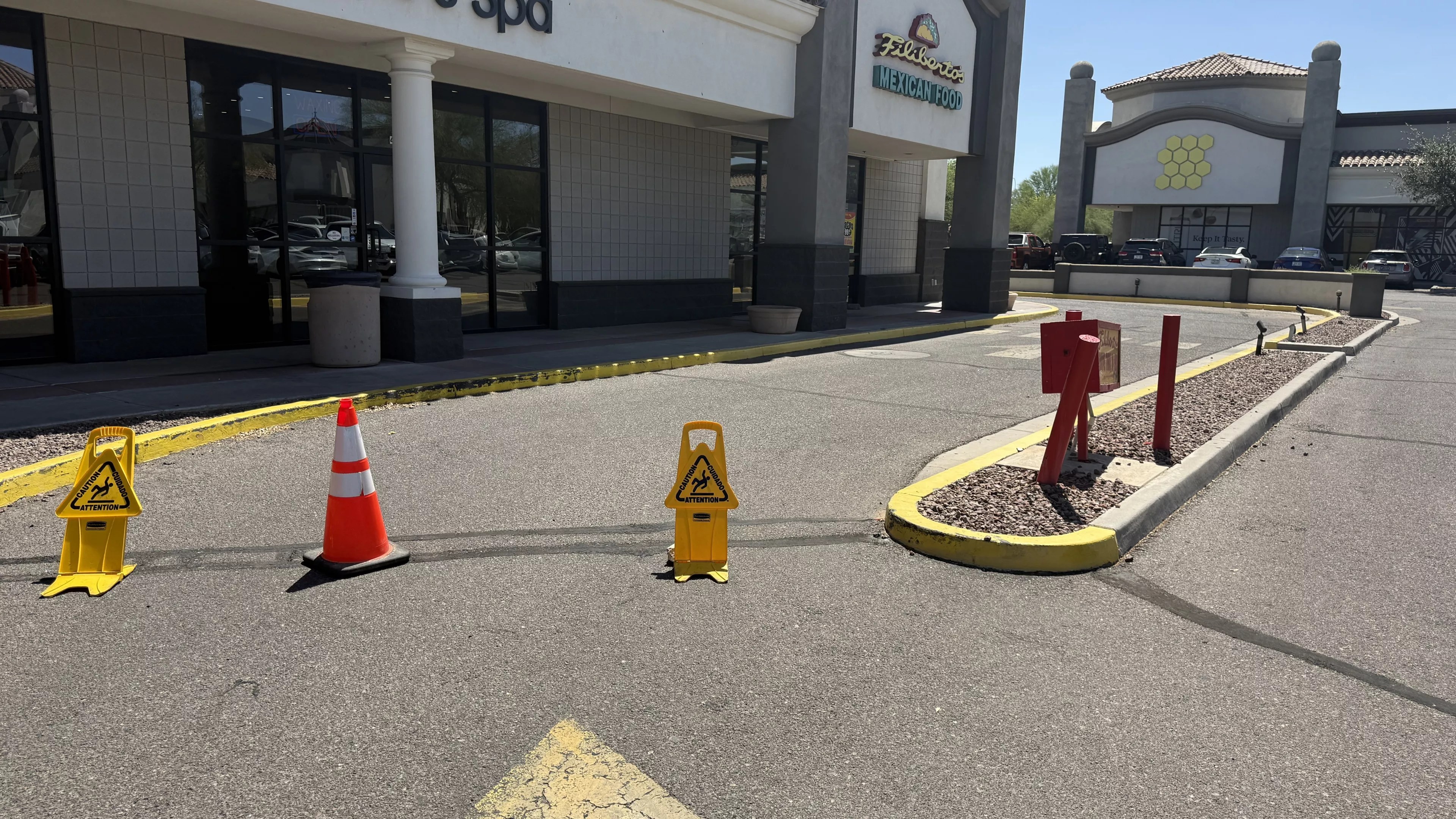 Cones blocked the entrance to a closed Filiberto’s in Chandler.