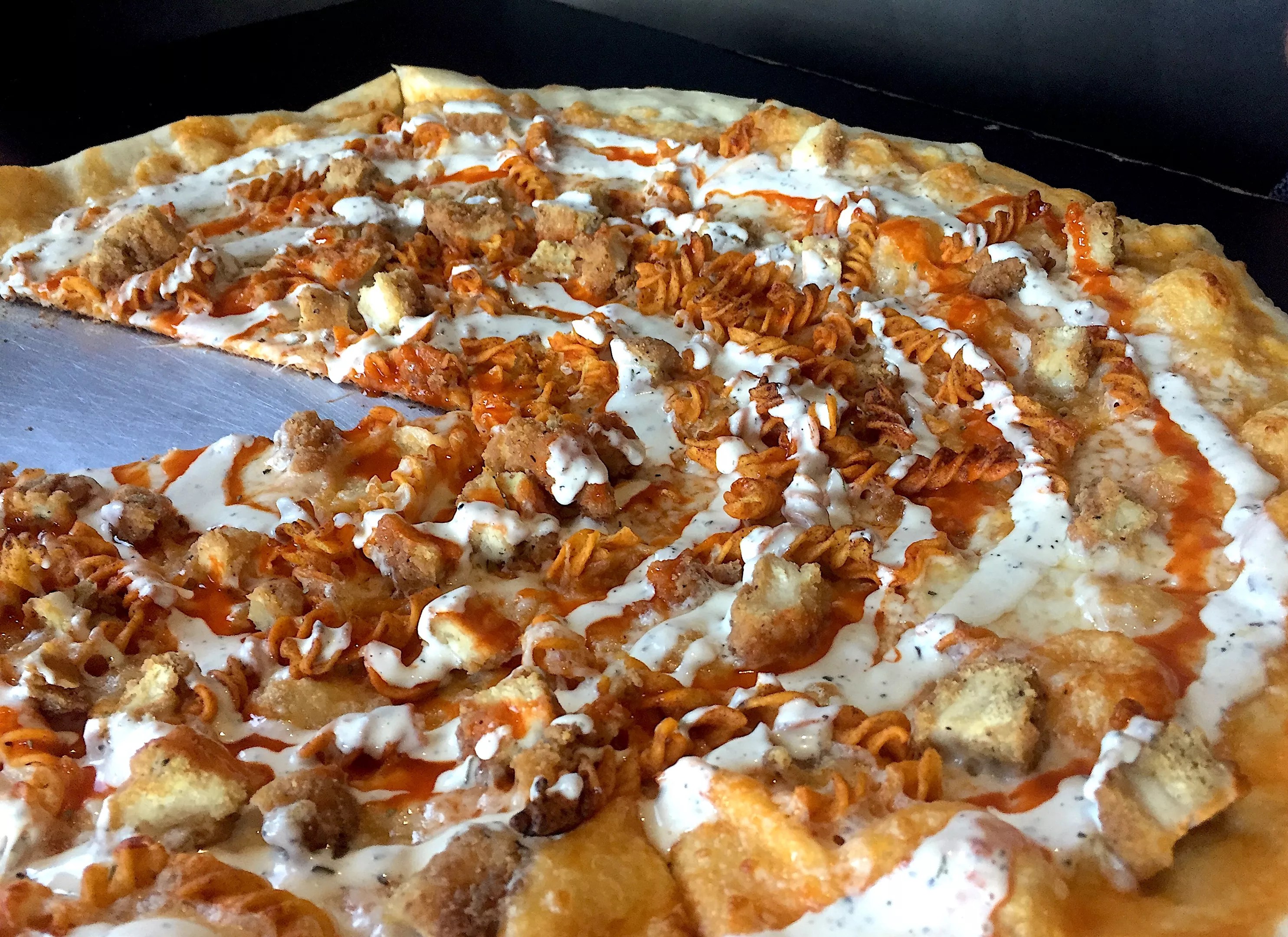 Spinelli’s buffalo chicken comes with breaded chicken, hot sauce, Fritos, and housemade ranch.