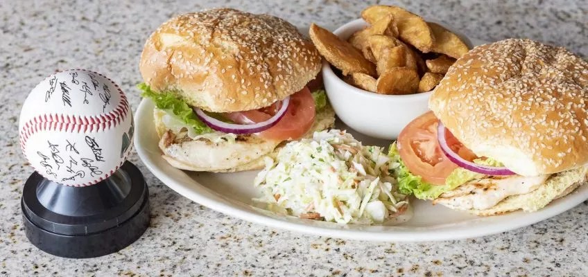 Buy any full price Waygu Kobe Beef Burger or a chicken breast sandwich and get one of equal or lesser value for free with the purchase of two drinks at Chompie’s. Customers can mix or match, and the lesser value will be discounted. Burger choices include the Philly steak burger, country-fried steak burger, the western burger, and Berger’s Big Burger. Chicken sandwich choices include the classic chicken sandwich, chicken BLT, buffalo chicken, Cajun Chicken Ecstasy, the baja chicken, the buttermilk fried chicken sandwich, and Sami’s Munchy Crunchy Chicken Wrap. This special is available the entire spring training season except March 17.